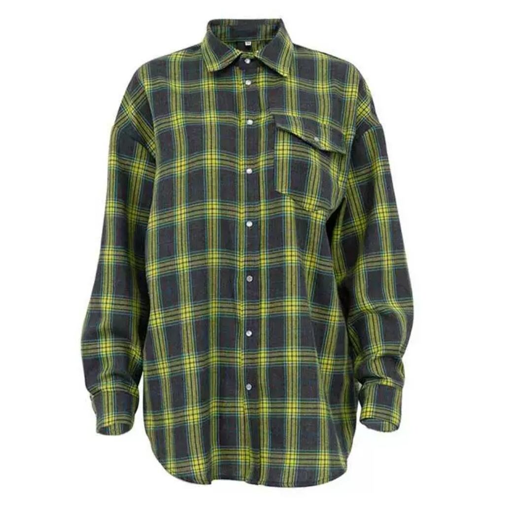チェック柄が特徴なポケット付きのシャツ。 そのまま着ても、ライトアウターとして羽織っても、シーンごとに使い方を変えてどんな場面でも着られる万能トップスです。 ◇カラー イエロー ピンク ◇サイズ:S,M,L S 胸囲:114cm / 着丈:76.5cm / 肩幅:57cm / 袖丈:52.5cm M 胸囲:118cm / 着丈:77.5cm / 肩幅:59cm / 袖丈:53cm L 胸囲:122cm / 着丈:78.5cm / 肩幅:61cm / 袖丈:53.5cm