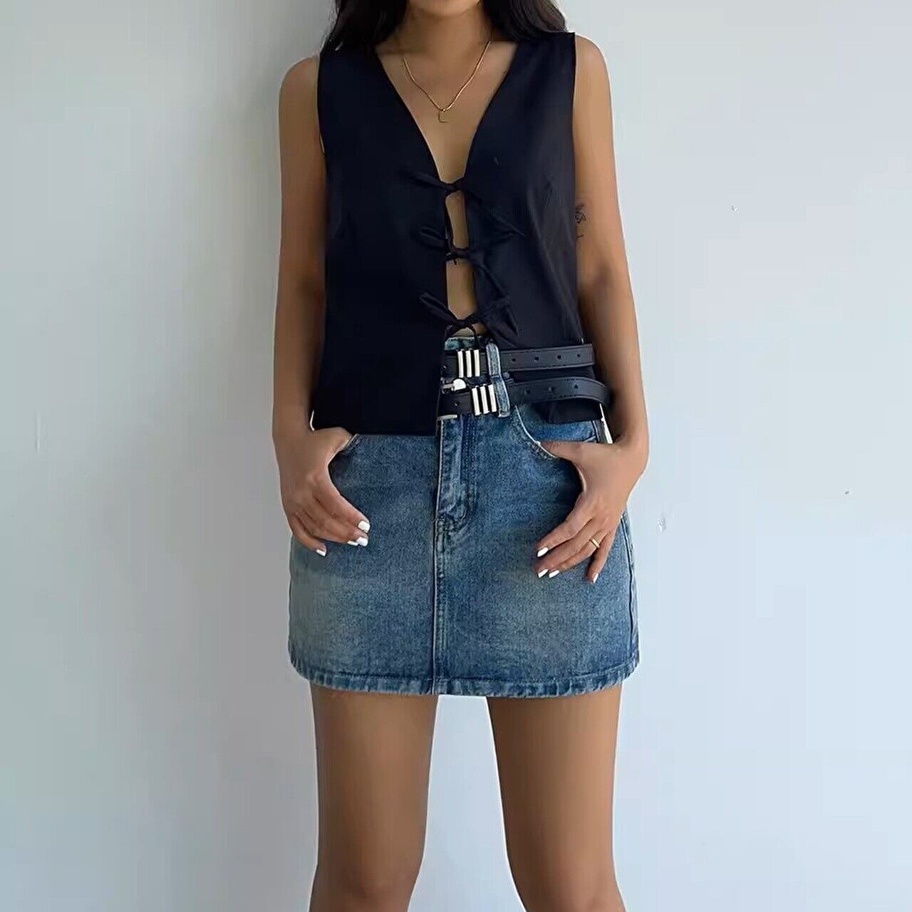 レースアップデザインのノースリーブベスト。 フロントの編み上げデザインがオシャレ! インナーとの重ね着もおススメです♪ ◇カラー ホワイト ブラック ◇素材 ポリエステル ◇サイズ:S,M,L S 肩幅:28cm / 胸囲:78cm / 着丈:50cm M 肩幅:29cm / 胸囲:82cm / 着丈:51cm L 肩幅:30.5cm / 胸囲:88cm / 着丈:52.5cm