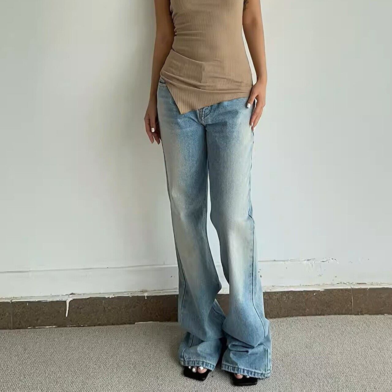 フレアデザインのビンテージライクデニム。 シンプルなデザインで着回しもしやすい◎ 1本あると便利なデニムです♪ ◇カラー ブルー ライトブルー ◇素材 デニム ◇サイズ:XS,S,M,L XS ウエスト:64cm / ヒップ:92cm / 着丈:112cm S ウエスト:68cm / ヒップ:96cm / 着丈:113cm M ウエスト:72cm / ヒップ:100cm / 着丈:114cm L ウエスト:76cm / ヒップ:104cm / 着丈:115cm ◇モデル 身長:165cm Sサイズ着用
