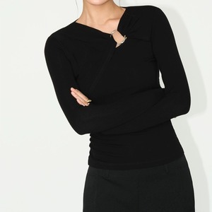 アシンメトリーリングデザインのスリムフィットトップス。 斜めの肩の位置はくり抜かれ、鎖骨の一部を少しだけ露出させ、細部までこだわりました。 一枚で存在感のあるスタイリングを楽しめます。 ◇カラー ブラック ネイビー ブラウン ◇素材 ビスコース 90% スパンデックス 10% ◇サイズ:S,M,L S 肩幅:34.5cm / 胸囲:72cm / 着丈:56cm / 袖丈:59cm M 肩幅:35.5cm / 胸囲:76cm / 着丈:57.5cm / 袖丈:60cm L 肩幅:36.5cm / 胸囲:80cm / 着丈:59cm / 袖丈:61cm ◇モデル 身長160cm:Sサイズ着用