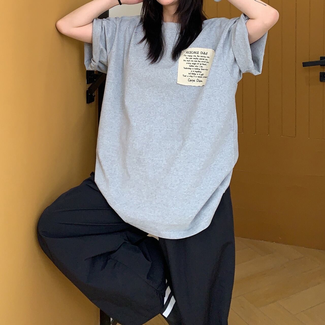 こなれた雰囲気を引き立てるオーバーサイズTシャツです。 バストのパッチがアクセントとなり、カジュアルな中にも洗練された印象を与えます。 幅広いスタイルにコーディネートしやすく、デイリーユースに最適な一着です! ◇カラー グレー ブラック ホワイト ◇素材 コットン ◇サイズ M 肩幅:54cm 胸囲:114cm 着丈:70cm 袖丈:21cm L 肩幅:55cm 胸囲:118cm 着丈:72cm 袖丈:22cm XL 肩幅:56cm 胸囲:122cm 着丈:74cm 袖丈:23cm 2XL 肩幅:57cm 胸囲:126cm 着丈:76cm 袖丈:24cm ◇モデル 身長:158cm、体重:40kg、Lサイズ着用