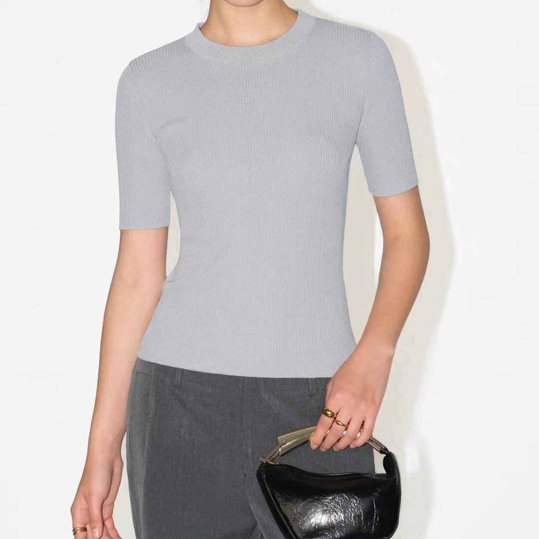 シンプルでエレガントなデザインが魅力のTシャツです! どんなスタイルにも合わせやすく、デイリーユースにぴったりです。 カジュアルな普段着から、ちょっとしたお出かけまで幅広く活躍します。 ◇カラー ブラック ホワイト グレー ◇素材 ビスコース ナイロン ◇サイズ:S,M,L S 肩幅:28cm胸囲:64cm着丈:52.5cm 袖丈:22cm M 肩幅:29cm胸囲:68cm着丈:54cm 袖丈:22.6cm L 肩幅:30cm胸囲:72cm着丈:55.5cm 袖丈:23.2cm ◇モデル 身長173cm:Sサイズ着用