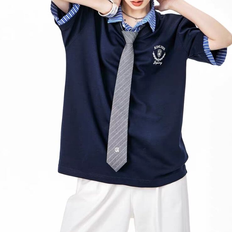 ポロシャツ風の重ね着風Tシャツが登場! アメリカンスタイルのフェイクツーピース半袖トップス。ゆったりシルエット×ポロ襟でカジュアルかつ上品に。 ◇カラー ブラック ネイビー オフホワイト ◇素材 コットン ポリエステル ◇サイズ:M,L,XL M 肩幅:43cm胸囲:102cm着丈:62cm 袖丈:21cm L 肩幅:44.5cm胸囲:106cm着丈:64cm 袖丈:21.5cm XL 肩幅:46cm胸囲:110cm着丈:66cm 袖丈:22cm