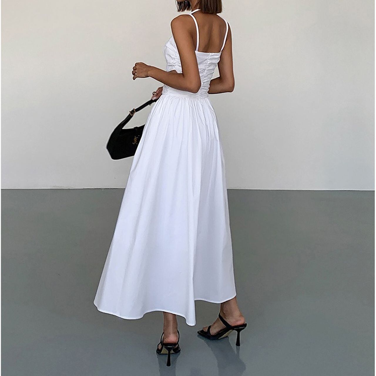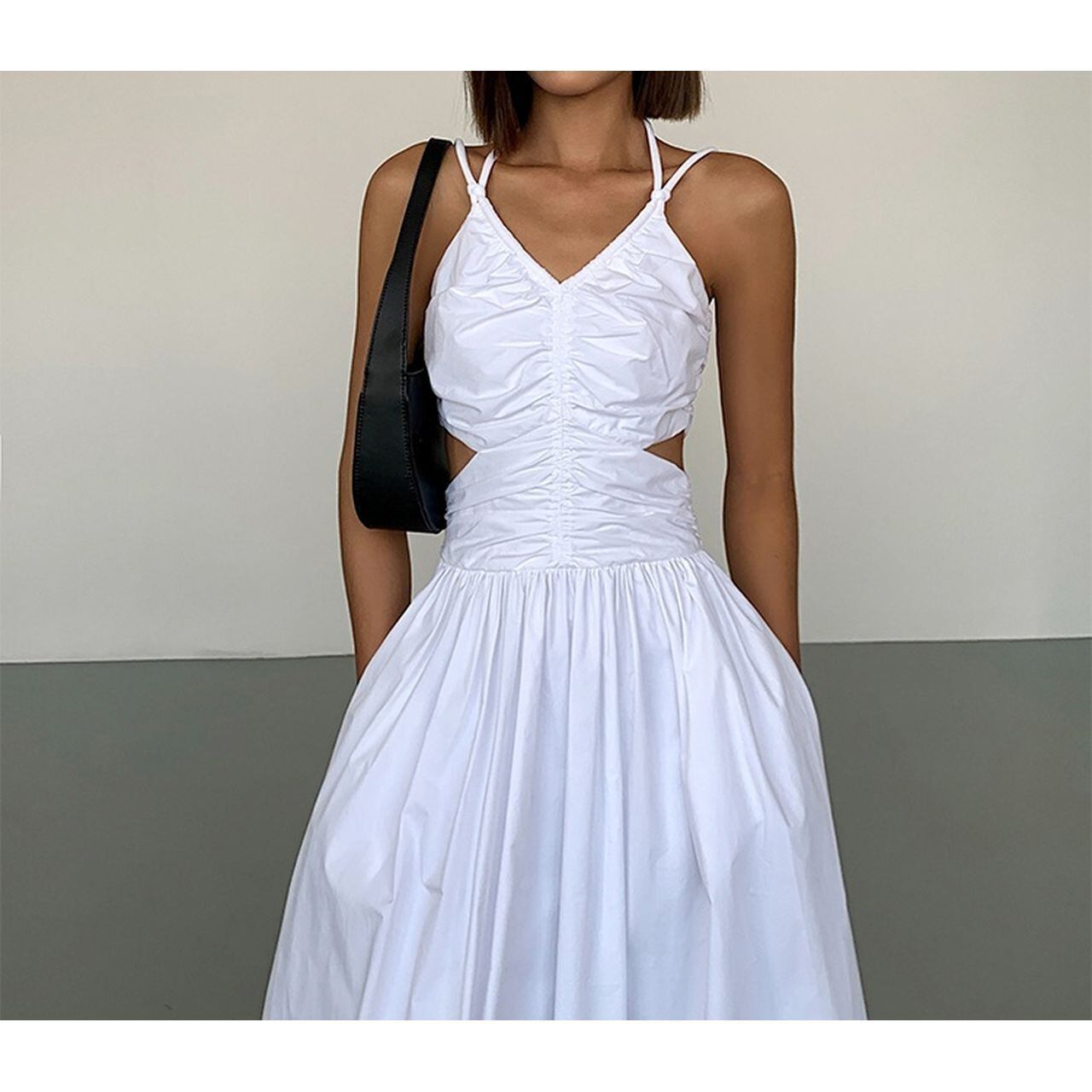 ◇カラー ホワイト ブラック ◇サイズ S 胸囲:84cm 着丈:127cm ウエスト:65cm M 胸囲:88cm 着丈:128.5cm ウエスト:69cm L 胸囲:92cm 着丈:130cm ウエスト:73cm ◇素材 コットン ◇モデル 身長:167cm、体重45kg、Sサイズ着用