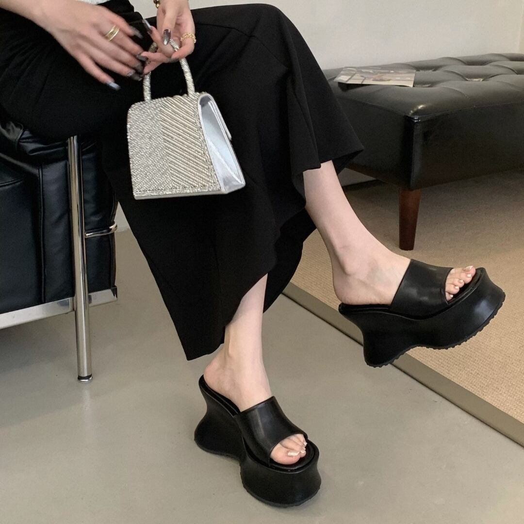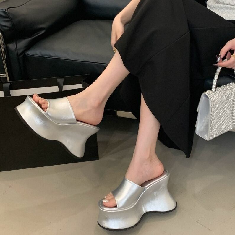 ナイトクラブやイベントにぴったりのスーパーハイヒールサンダル。大胆なウェッジヒールと厚底プラットフォームで、脚長&スタイルアップ効果抜群。小柄さんにも嬉しい高さで、女性らしいシルエットを叶えます。 ◇カラー ブラック ライクラブラック ヒョウ シルバー ◇サイズ:35,36,37,38,39 35 → 22.5cm 36 → 23.0cm 37 → 23.5cm 38 → 24.0cm 39 → 24.5cm ヒールの高さ:11cm