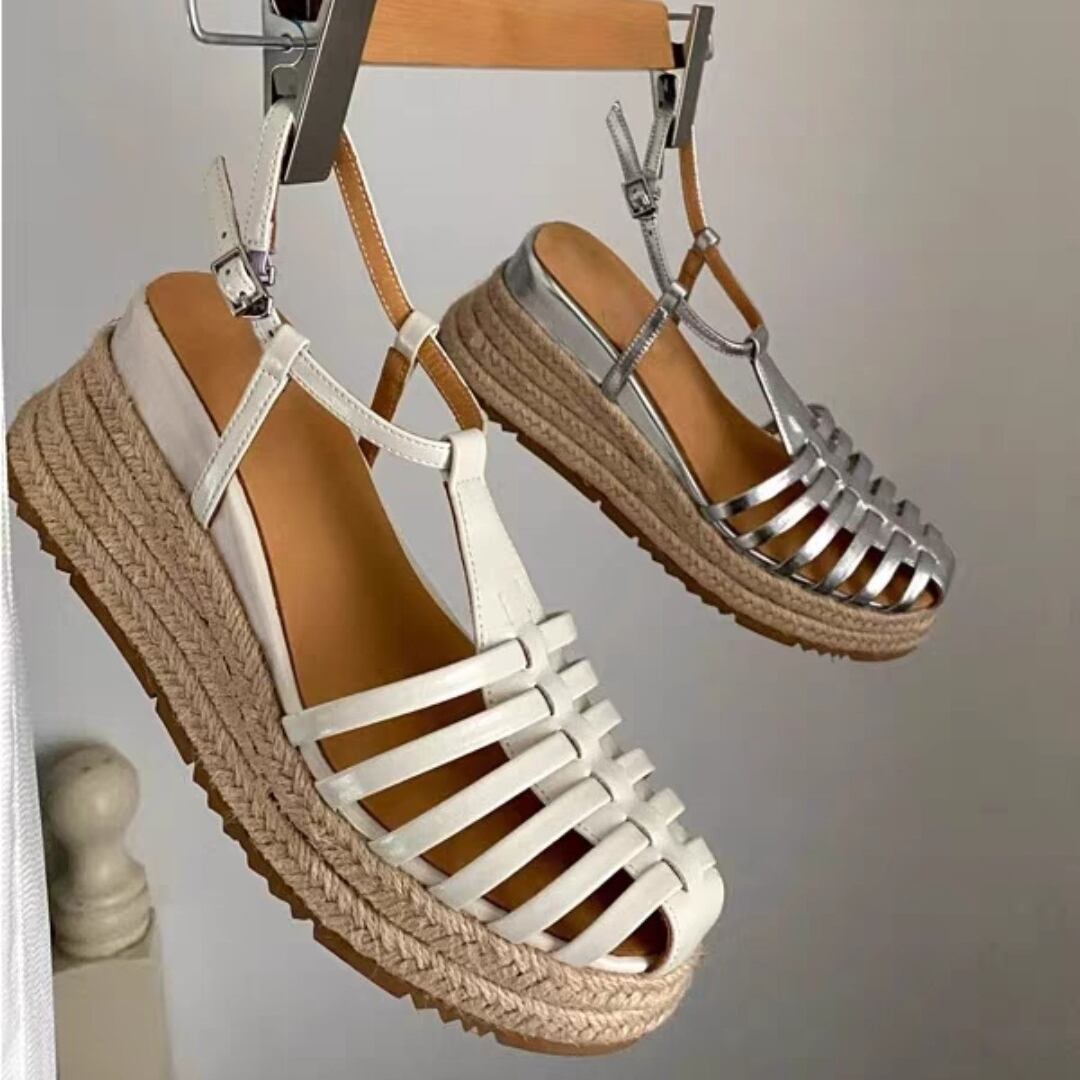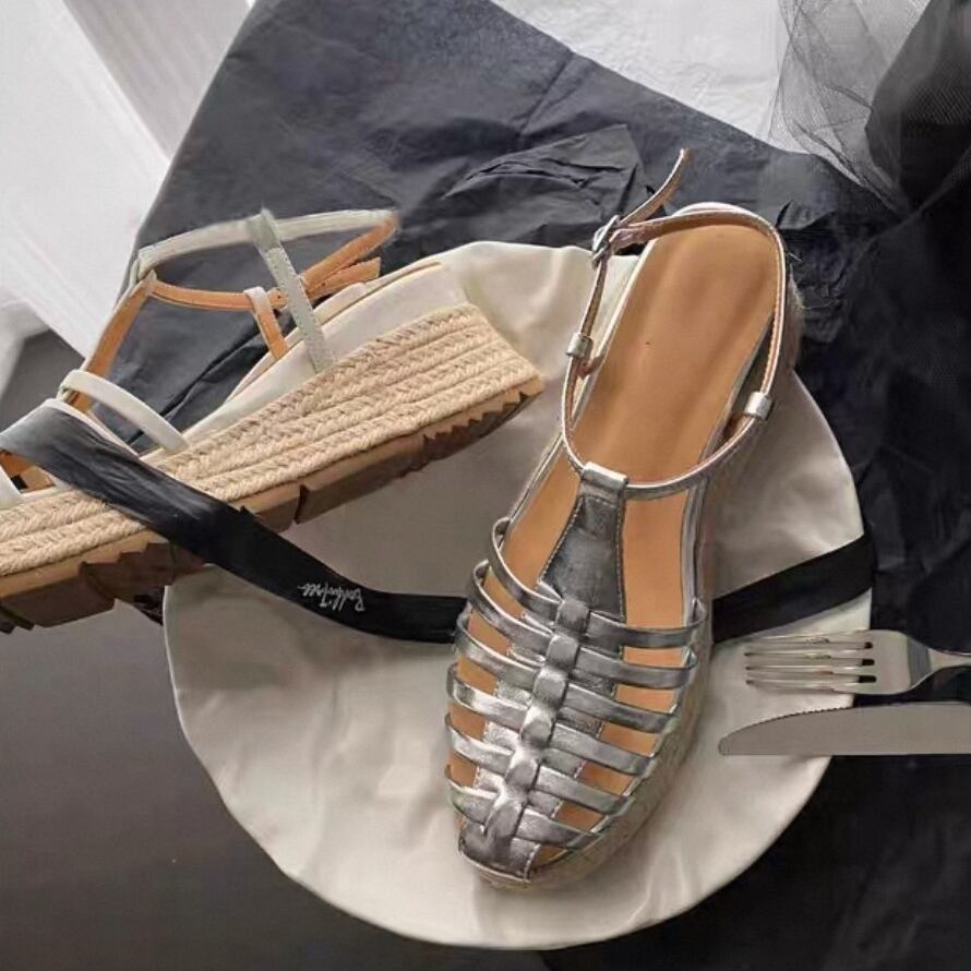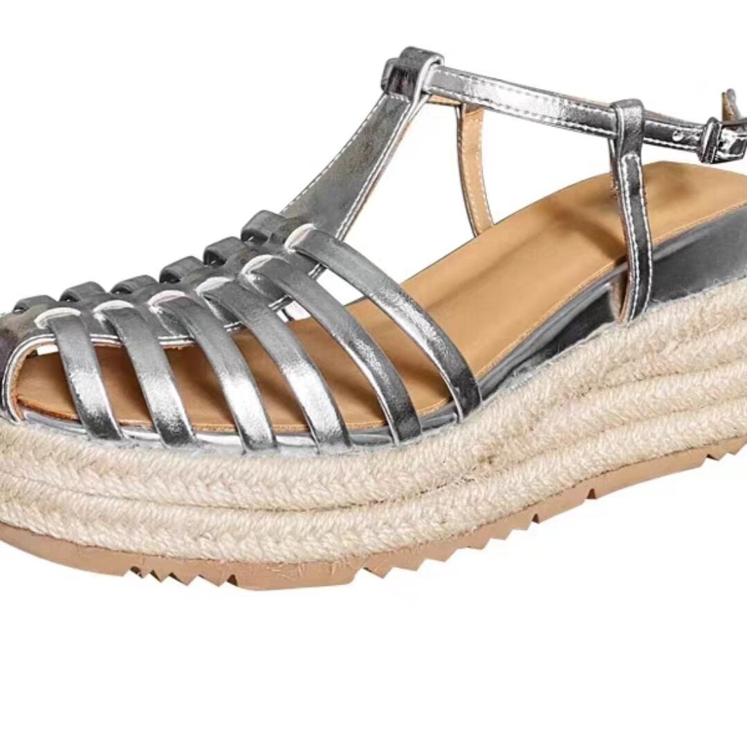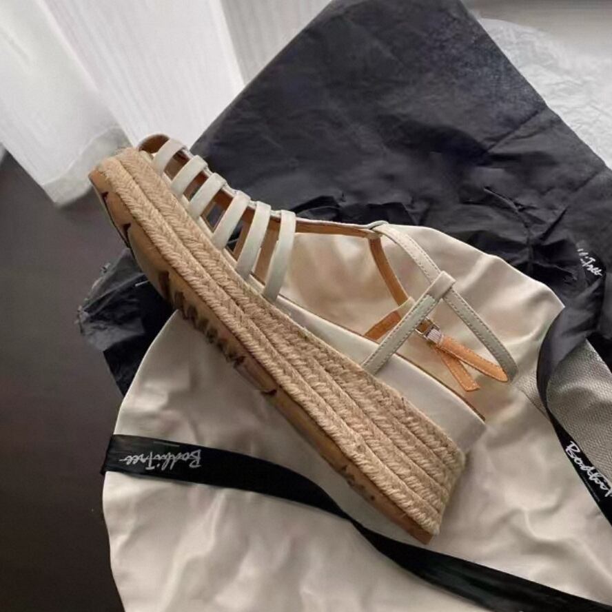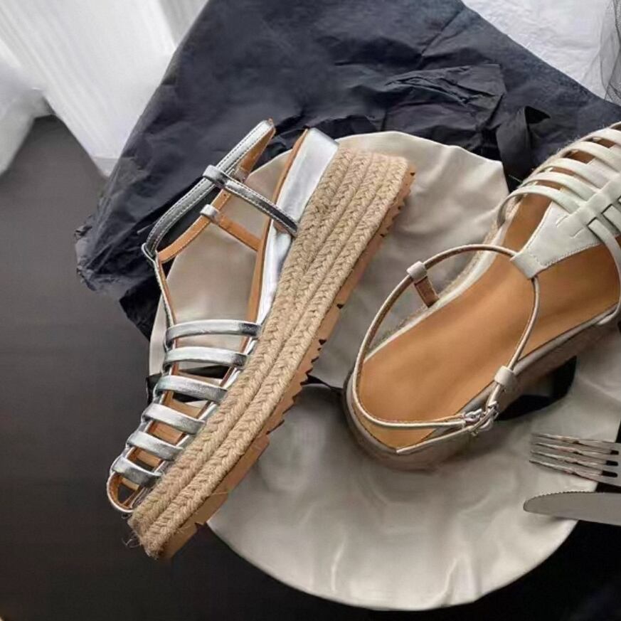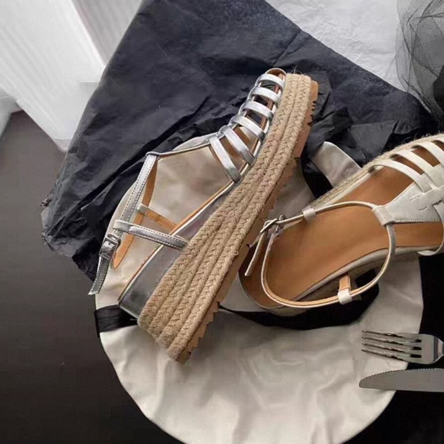 カジュアルで歩きやすいのに、足元をぐっとおしゃれに引き締めてくれるハイヒール厚底サンダル。ローマ風の編み込みデザインとバックルベルトが大人の抜け感を演出します。ワンピースにもデニムにも好相性! ◇カラー オフホワイト シルバー ◇素材 PU ◇サイズ:35,36,37,38,39 35 → 22.5cm 36 → 23.0cm 37 → 23.5cm 38 → 24.0cm 39 → 24.5cm ヒールの高さ:13cm