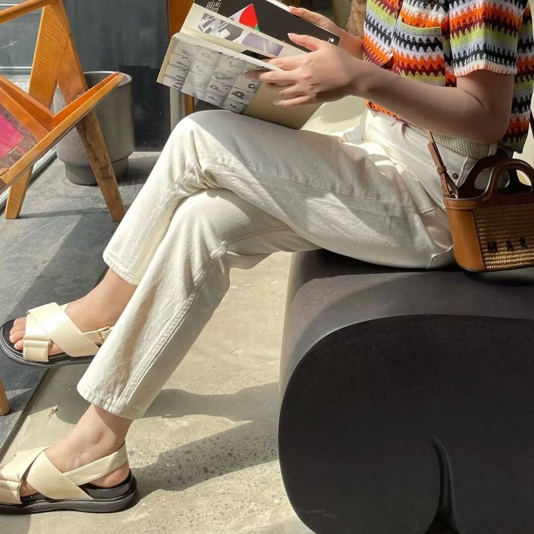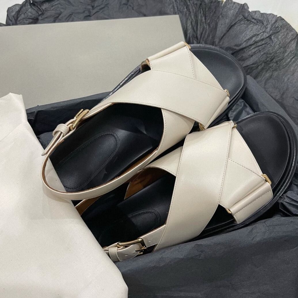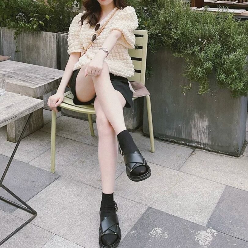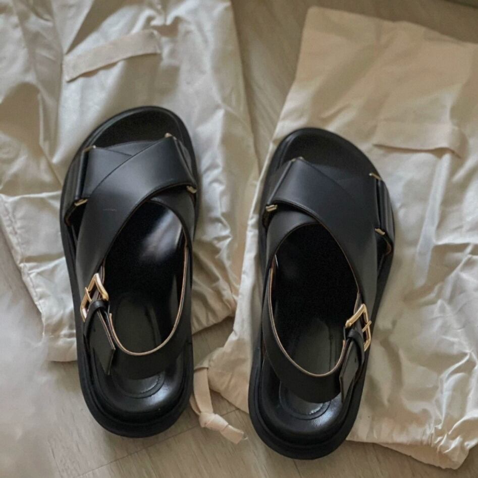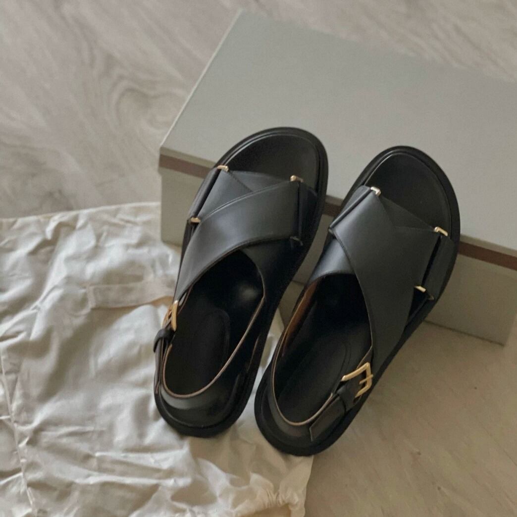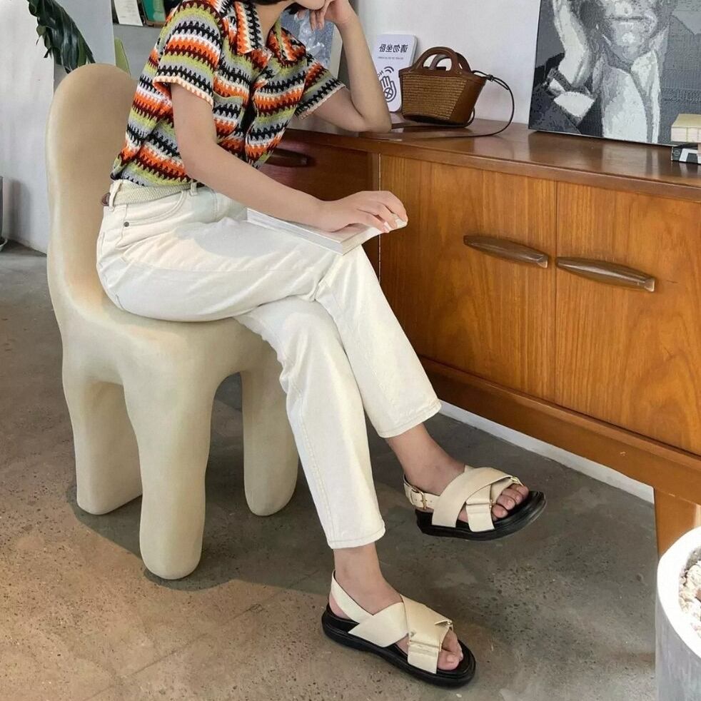 クラシカルなデザインとクロスレザーが特徴の厚底サンダル。オールマッチで使えるから、カジュアルコーデはもちろん、フェミニンやモードにもぴったり。小さいサイズも展開しており、足元から美しくスタイルアップできます。 ◇カラー ブラック オフホワイト ◇素材 羊皮 ◇サイズ:35,36,37,38,39,40 35 → 22.5cm 36 → 23.0cm 37 → 23.5cm 38 → 24.0cm 39 → 24.5cm 40 → 25.0cm ヒールの高さ:3-5cm