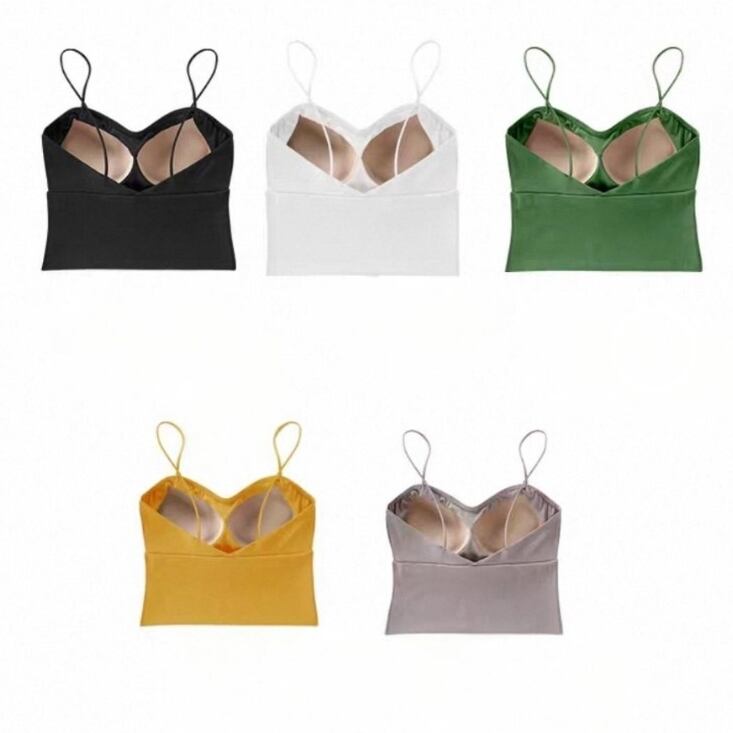 調整可能なショルダーストラップ付きで、自分好みにフィットするキャミソール。軽やかな着心地とスタイリッシュなデザインに加え、胸パッド付きで1枚でも着用可能。インナーにもアウターにも使える万能アイテ厶です。 ◇カラー ホワイト ブラック グリーン ベージュ イエロー ◇素材 コットン ◇サイズ:S,M,L,XL S 胸囲:60-75cm着丈:40cm M 胸囲:62-80cm着丈:41cm L 胸囲:69-85cm着丈:42cm XL 胸囲:68-90cm着丈:43cm