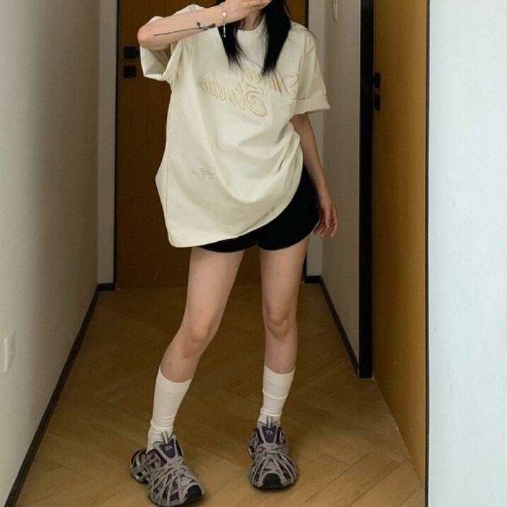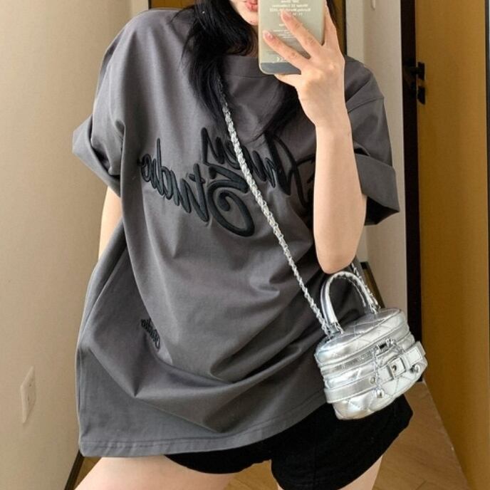 夏のこなれ感を叶える、3D立体刺繍Tシャツ。 ルーズなシルエットがこなれた印象を演出し、レトロでカジュアルな雰囲気が今っぽさ満点。カップルでのお揃いコーデにもおすすめ! ◇カラー グレー オフホワイト ◇素材 コットン ◇サイズ:M,L,XL,2XL M 肩幅:51cm 胸囲:110cm 着丈:66.5cm 袖丈:24.5cm L 肩幅:52.5cm 胸囲:114cm 着丈:68.5cm 袖丈:25cm XL 肩幅:54cm 胸囲:116cm 着丈:70.5cm 袖丈:25.5cm 2XL 肩幅:55.5cm 胸囲:122cm 着丈:72.5cm 袖丈:26cm ◇モデル 身長158cm:Lサイズ着用