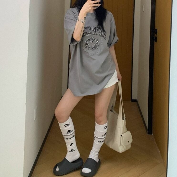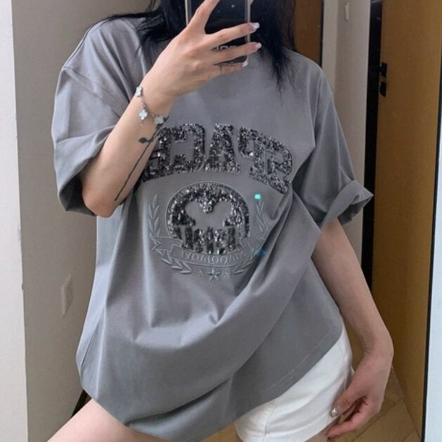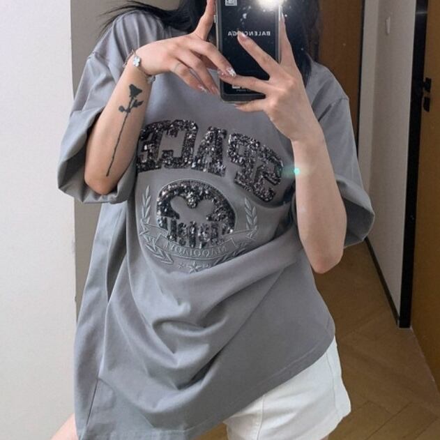 フェイチャイのハイストリートTシャツ。スパンコール刺繍とヴィンテージ感漂うカラーで、大人のこなれ感を演出。夏らしい軽やかさとモードなムードを両立させる、唯一無二のスタイルです。 ◇カラー ブラック グレー ◇素材 コットン ◇サイズ:M,L,XL,2XL M 肩幅:51cm 胸囲:110cm 着丈:66.5cm 袖丈:24.5cm L 肩幅:52.5cm 胸囲:114cm 着丈:68.5cm 袖丈:25cm XL 肩幅:54cm 胸囲:116cm 着丈:70.5cm 袖丈:25.5cm 2XL 肩幅:55.5cm 胸囲:122cm 着丈:72.5cm 袖丈:26cm ◇モデル 身長158cm:Lサイズ着用
