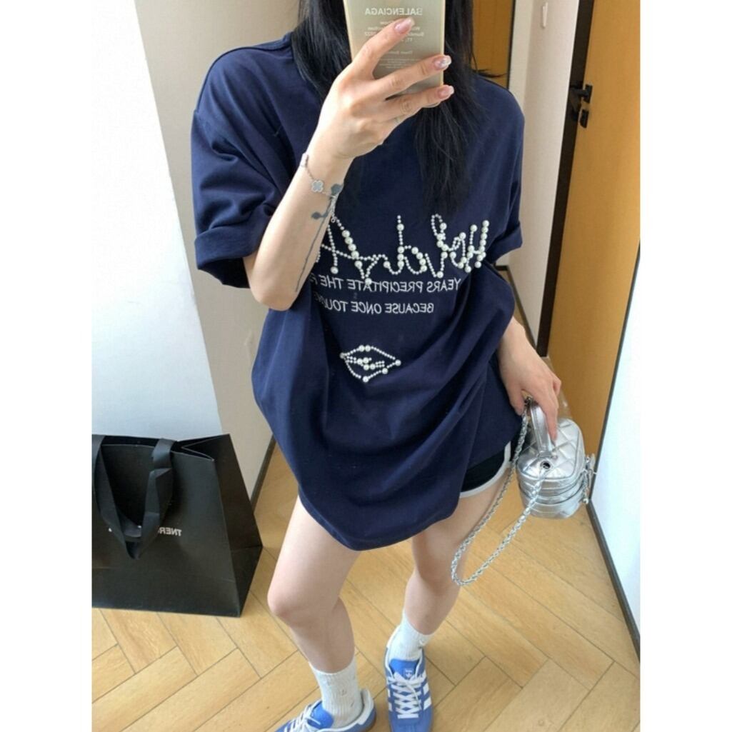 繊細なビーズ刺繍がアクセントの半袖Tシャツ。シンプルなのにこなれ感たっぷりで、一枚でサマになるデザイン。カップルで着れば、リンクコーデも楽しめます。 ◇カラー ネイビー ブラック ◇素材 コットン ◇サイズ:M,L,XL M 肩幅:54cm 胸囲:114cm 着丈:77cm 袖丈:23cm L 肩幅:55cm 胸囲:118cm 着丈:78.5cm 袖丈:24cm XL 肩幅:56cm 胸囲:122cm 着丈:80cm 袖丈:25cm ◇モデル 身長158cm:Mサイズ着用