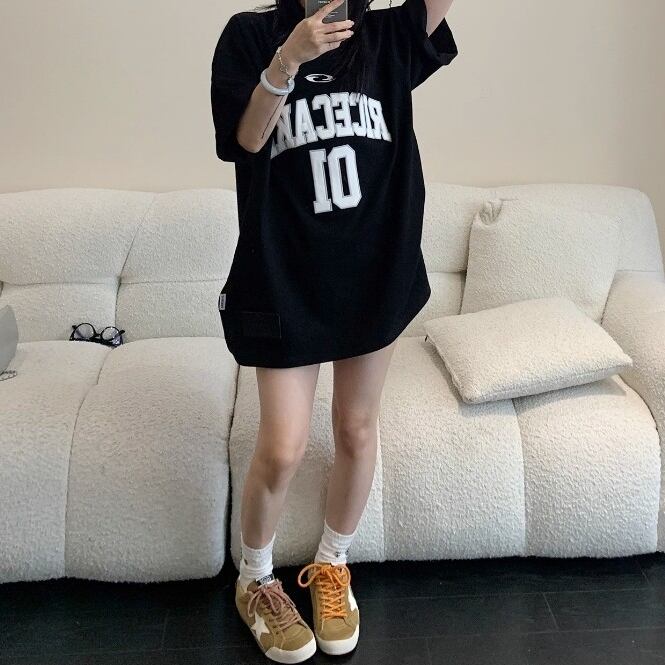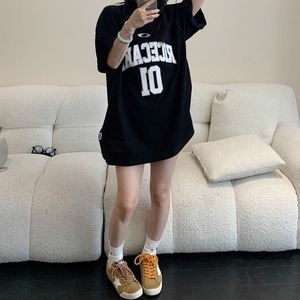 シックで落ち着いたカラーに、存在感のあるヘビー刺繍をあしらったTシャツ。ルーズなシルエットがリラックス感を演出しつつ、レトロなジャージースタイルでトレンド感もプラス。デイリーにも、ちょっとしたお出かけにもぴったりです。