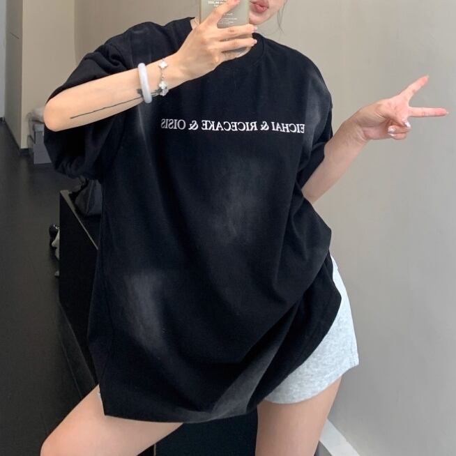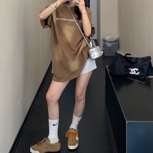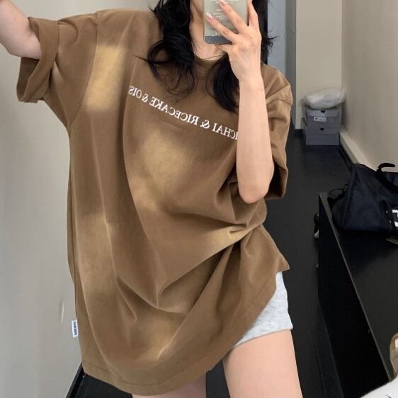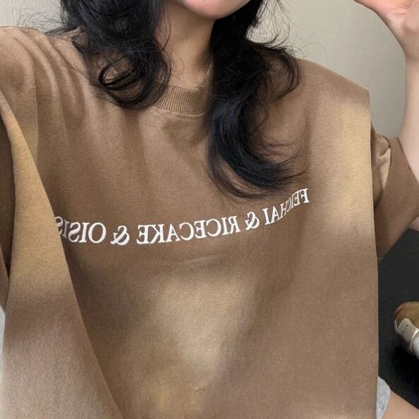 アメリカンレトロな雰囲気をまとった、ヘビーウォッシュ加工のコットンTシャツ。味わい深い色落ちとオールドレタープリントがヴィンテージムード満点。ルーズなサイズ感と柔らかい着心地で、レイジーな夏のスタイルにぴったりです。 ◇カラー ブラウン ブラック ◇素材 コットン ◇サイズ:M,L,XL,2XL M 肩幅:54cm 胸囲:114cm 着丈:71cm 袖丈:21cm L 肩幅:55cm 胸囲:118cm 着丈:73cm 袖丈:22cm XL 肩幅:56cm 胸囲:122cm 着丈:75cm 袖丈:23cm 2XL 肩幅:57cm 胸囲:126cm 着丈:77cm 袖丈:24cm ◇モデル 身長158cm:Lサイズ着用