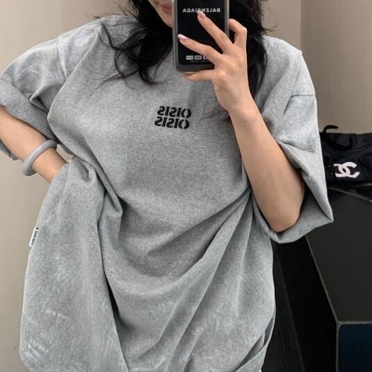 Oversize American Retro Embroidery Short sleeve Tshirt 125377