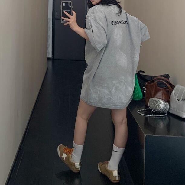 くたっとしたヴィンテージ感のあるボディに、こなれたペイント刺繍をオン。どこか懐かしくも新しい、廃材テイストが今っぽいシックな一枚。ゆるめのシルエットで抜け感たっぷり、スキニーやデニムと合わせてラフに決めて。