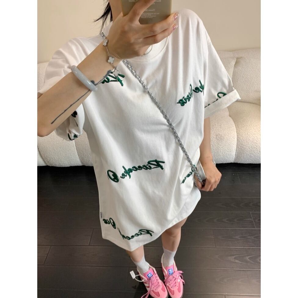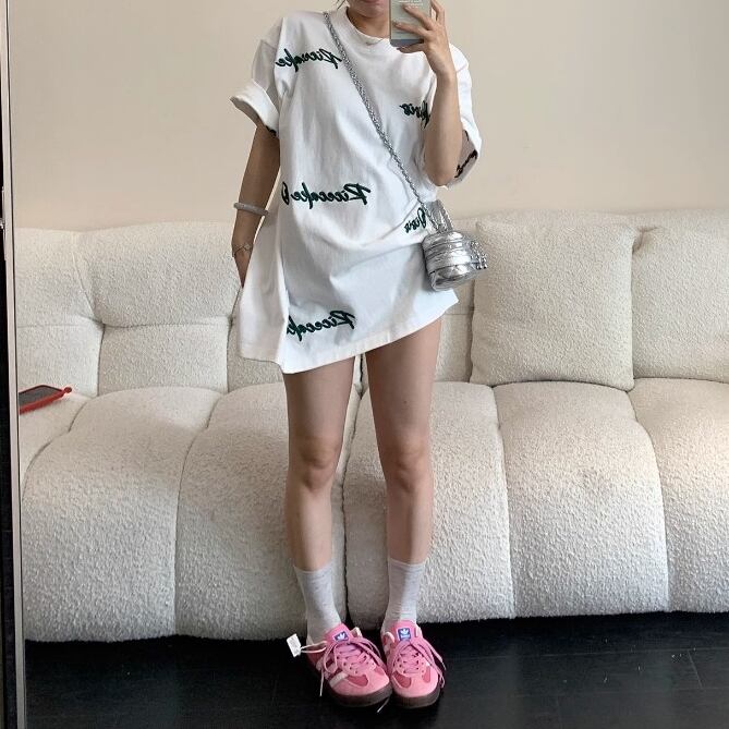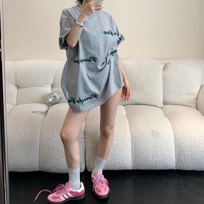 無地感覚で着られるミニマルさに、韓国らしい重厚な刺繍がアクセントのTシャツ。ほどよくゆるっとしたオーバーサイズは、レイジーなこなれ感を演出。シックで飽きのこないデザインは、カップルでのリンクコーデにもおすすめ。 ◇カラー グレー ホワイト ◇素材 コットン ◇サイズ:M,L,XL,2XL M 肩幅:54cm 胸囲:114cm 着丈:71cm 袖丈:21cm L 肩幅:55cm 胸囲:118cm 着丈:73cm 袖丈:22cm XL 肩幅:56cm 胸囲:122cm 着丈:75cm 袖丈:23cm 2XL 肩幅:57cm 胸囲:126cm 着丈:77cm 袖丈:24cm ◇モデル 身長158cm:Lサイズ着用