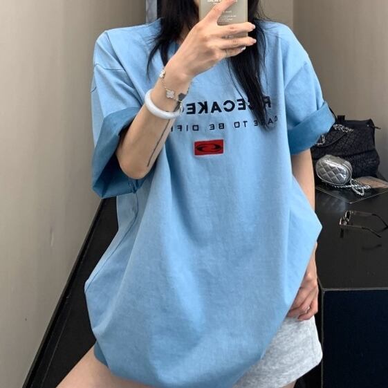 胸元にはさりげないオールド刺繍が施され、シンプルながらセンスの光るデザインのTシャツ。ゆったり着られるシルエットで、デニムやワイドパンツとの相性も◎。夏のワードローブに加えたい一着です。 ◇カラー ブルー ブラック ◇素材 コットン ◇サイズ:M,L,XL,2XL M 肩幅:54cm 胸囲:114cm 着丈:71cm 袖丈:21cm L 肩幅:55cm 胸囲:118cm 着丈:73cm 袖丈:22cm XL 肩幅:56cm 胸囲:122cm 着丈:75cm 袖丈:23cm 2XL 肩幅:57cm 胸囲:126cm 着丈:77cm 袖丈:24cm ◇モデル 身長158cm:Lサイズ着用