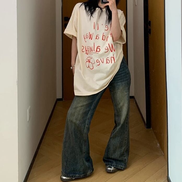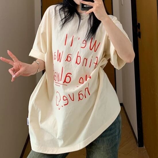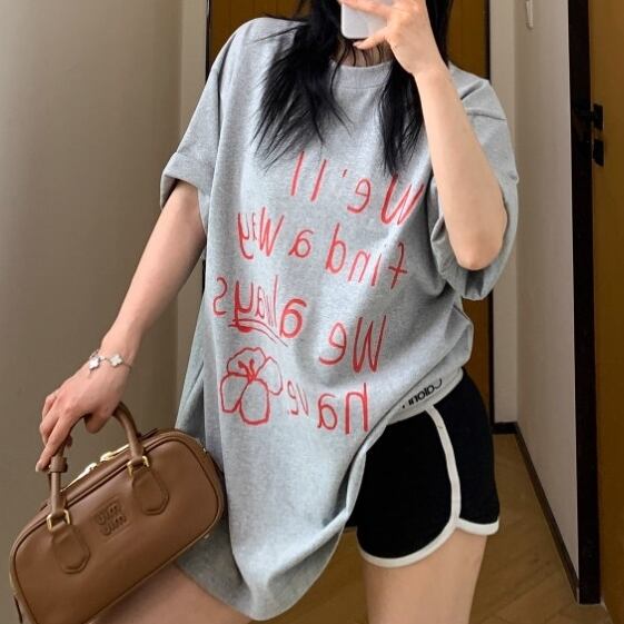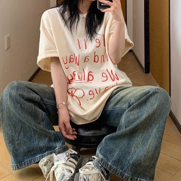 シンプルなのにしっかり“映える”文字プリントTシャツ。レトロな雰囲気と、ゆったりめのシルエットで今っぽさを演出。休日のお出かけからおうち時間まで、幅広く使える万能カジュアルトップス。 ◇カラー オフホワイト グレー ◇素材 コットン ◇サイズ:M,L,XL,2XL M 肩幅:54cm 胸囲:114cm 着丈:70cm 袖丈:21cm L 肩幅:55cm 胸囲:118cm 着丈:72cm 袖丈:22cm XL 肩幅:56cm 胸囲:122cm 着丈:74cm 袖丈:23cm 2XL 肩幅:57cm 胸囲:126cm 着丈:76cm 袖丈:24cm ◇モデル 身長158cm:Lサイズ着用