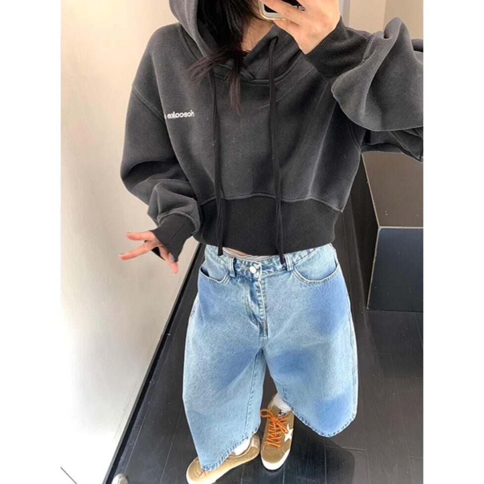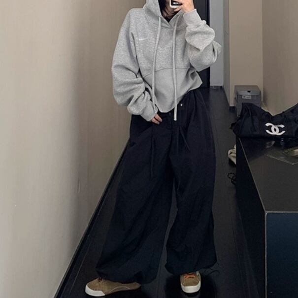 トレンドのショート丈×ゆったりシルエットで、ラフなのにスタイルアップが叶うフーディスウェット。シンプルなアイテムと合わせるだけで、旬のカジュアルコーデが完成。大人女子のデイリーにぴったりの一枚です。 ◇カラー ブラック グレー ◇素材 コットン ◇サイズ:M,L,XL,2XL M 肩幅:51cm 胸囲:110cm 着丈:50cm 袖丈:59cm L 肩幅:52cm 胸囲:114cm 着丈:52cm 袖丈:60cm XL 肩幅:53cm 胸囲:118cm 着丈:54cm 袖丈:61cm 2XL 肩幅:54cm 胸囲:122cm 着丈:56cm 袖丈:62cm 身長158cm:Lサイズ着用