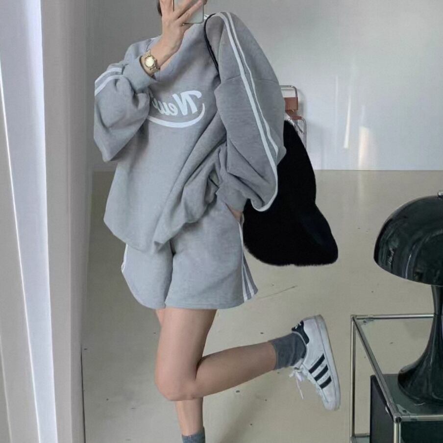 韓国風のトレンドを取り入れた春秋新作スウェットセットアップ。