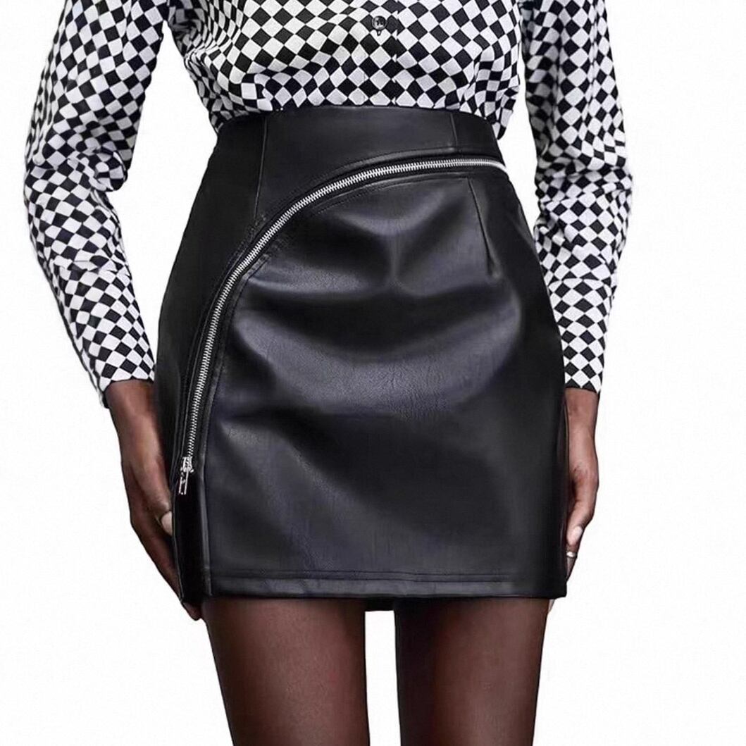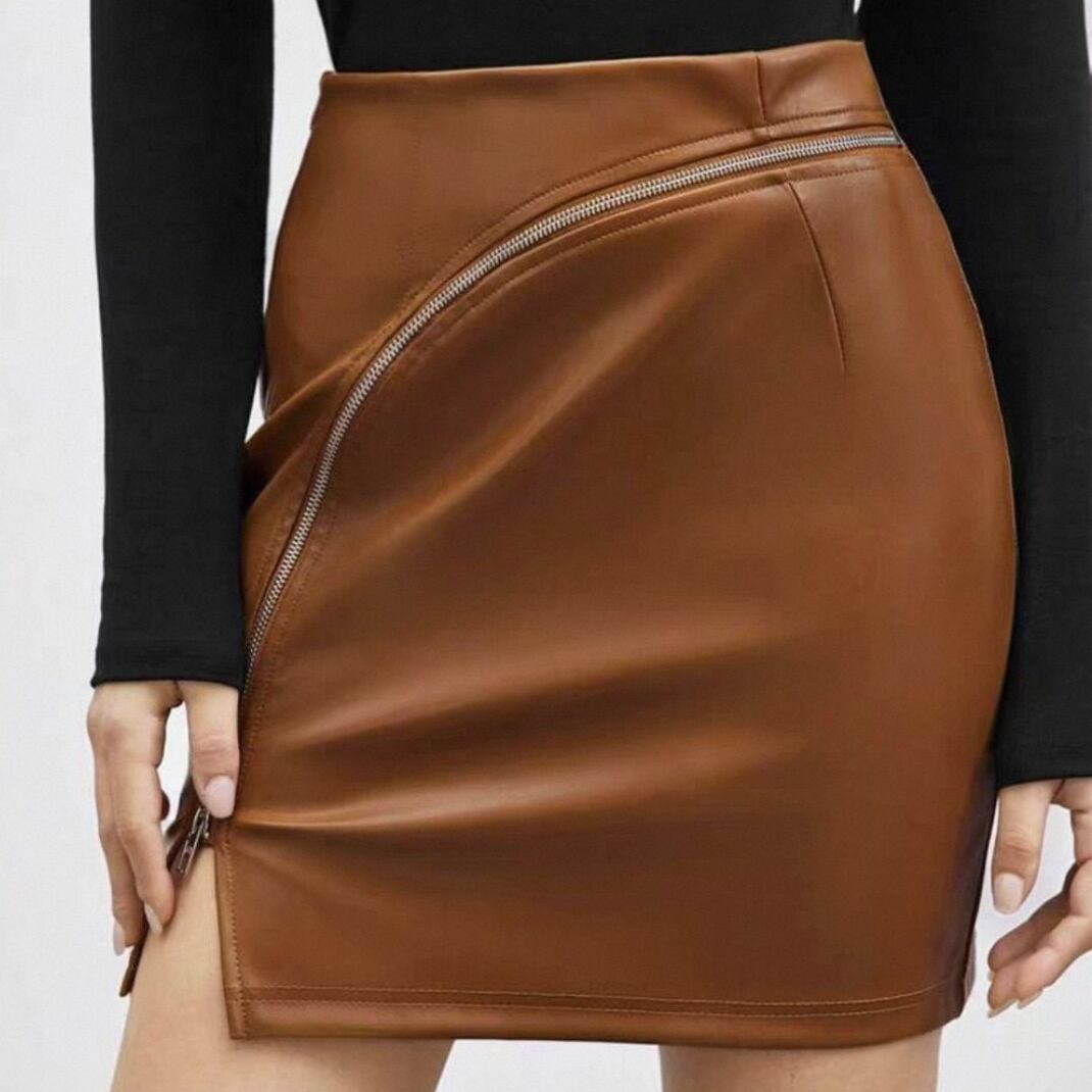 ハイウエスト仕様で脚長効果を叶える、PUレザースカート。 不規則なシルエットが程よい個性をプラスし、ヨーロッパとアメリカの都会的な雰囲気を演出。 Tシャツやニットと合わせればデイリーに、ブラウスやジャケットと合わせればエレガントに。 ◇カラー ブラック ブラウン ◇素材 PU ◇サイズ:S,M,L,XL S ウエスト:66cm / 着丈:42cm / ヒップ:96cm M ウエスト:70cm / 着丈:43cm / ヒップ:100cm L ウエスト:76cm / 着丈:44cm / ヒップ:106cm XL ウエスト:82cm / 着丈:45cm / ヒップ:112cm
