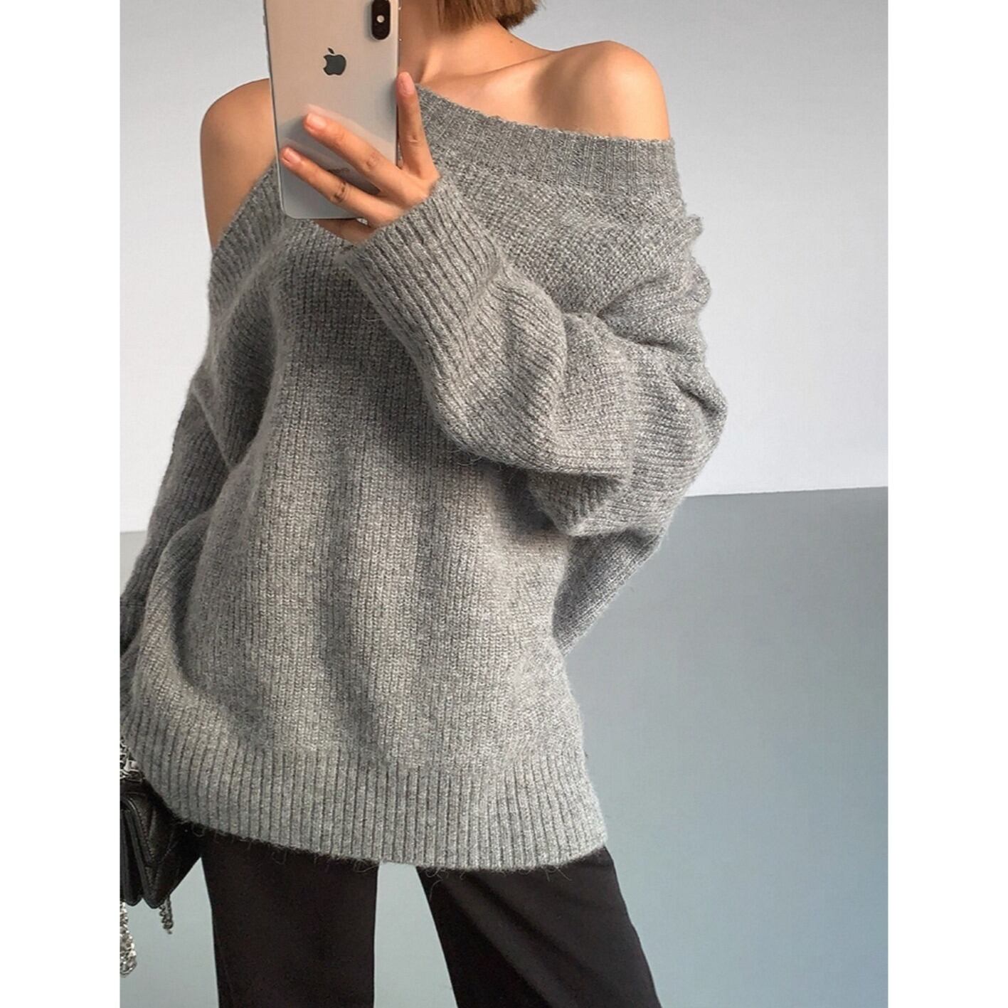 秋の装いにぴったりな、大人のゆるっと感を楽しめるウールセーター。シンプルながら存在感があり、デニムやスカートとも相性抜群。ワードローブに加えたい旬のトップスです。 ◇カラー ブラック グレー ◇素材 アクリル ポリエステル ◇サイズ:S,M,L S 肩幅:56cm 胸囲:124cm 着丈:60cm 袖丈:41.5cm M 肩幅:57.5cm 胸囲:127cm 着丈:61.5cm 袖丈:42.3cm L 肩幅:59cm 胸囲:132cm 着丈:63cm 袖丈:43.5cm ◇モデル 身長167cm:Sサイズ着用