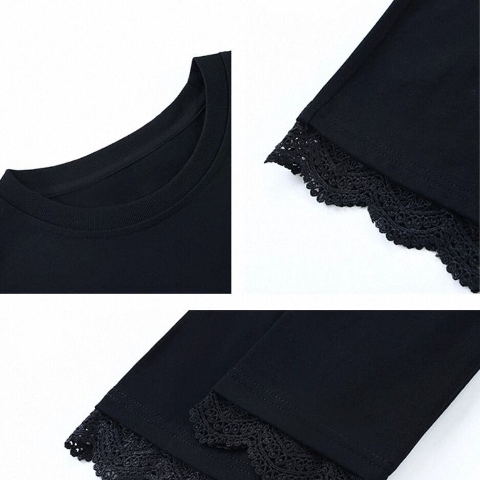 ラウンドネック×ステッチレースのデザインで、シンプルながらも甘すぎない大人かわいい雰囲気を楽しめる長袖Tシャツ。韓国風のトレンド感と、柔らかなシルエットでデートやお出かけにも◎。一枚で着ても、レイヤードしてもおしゃれに決まります。 ◇カラー ホワイト ブラック ◇素材 コットン ◇サイズ:S,M,L S 肩幅:48cm胸囲:108cm着丈:47.5cm 袖丈:57.5cm M 肩幅:49cm胸囲:112cm着丈:76cm 袖丈:58.5cm L 肩幅:50cm胸囲:116cm着丈:77.5cm 袖丈:59.5cm ◇モデル 身長173cm:Mサイズ着用