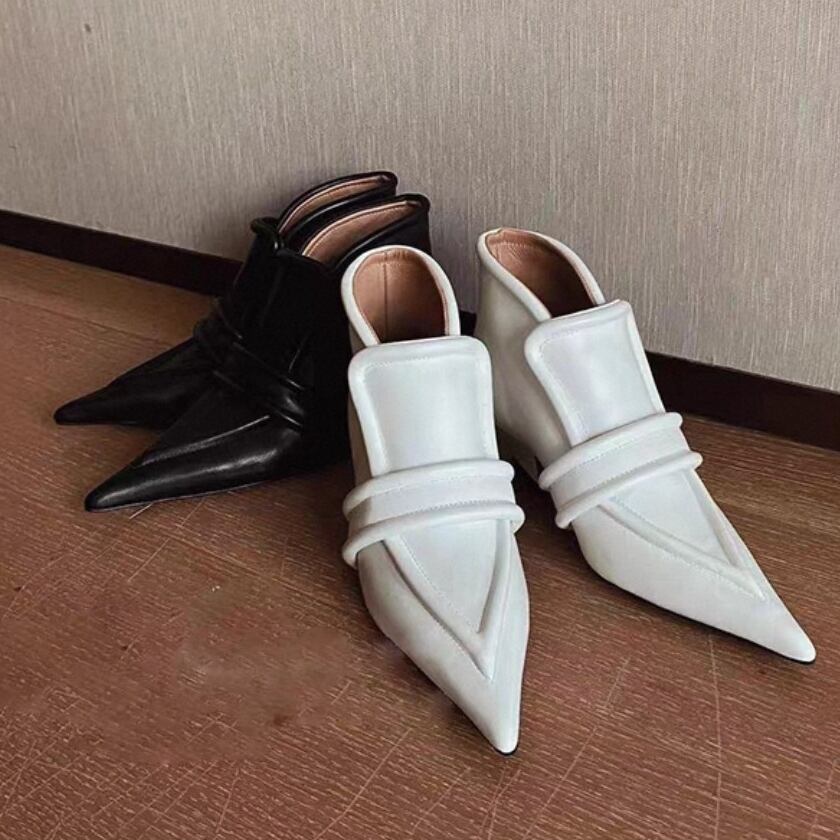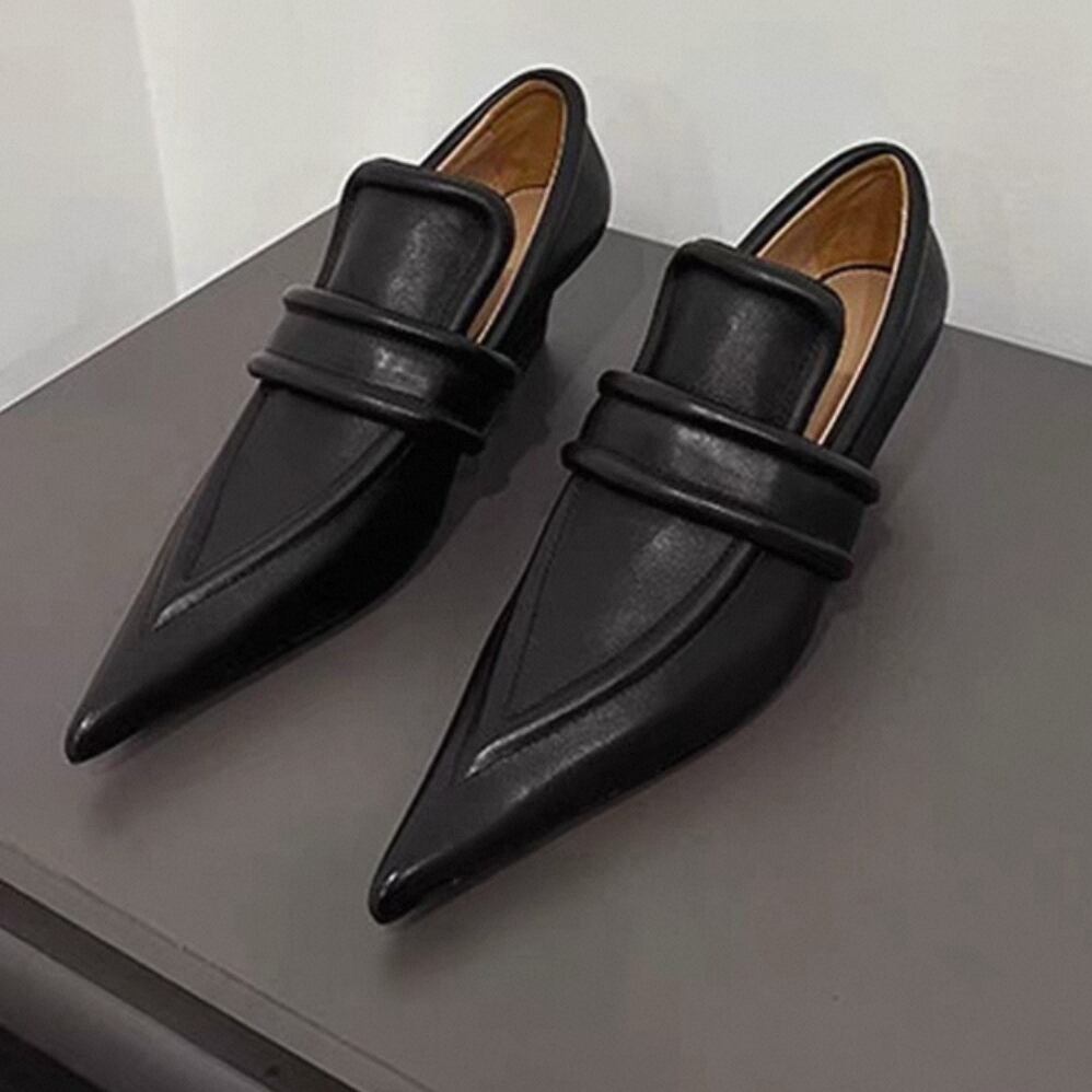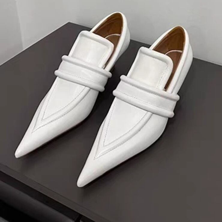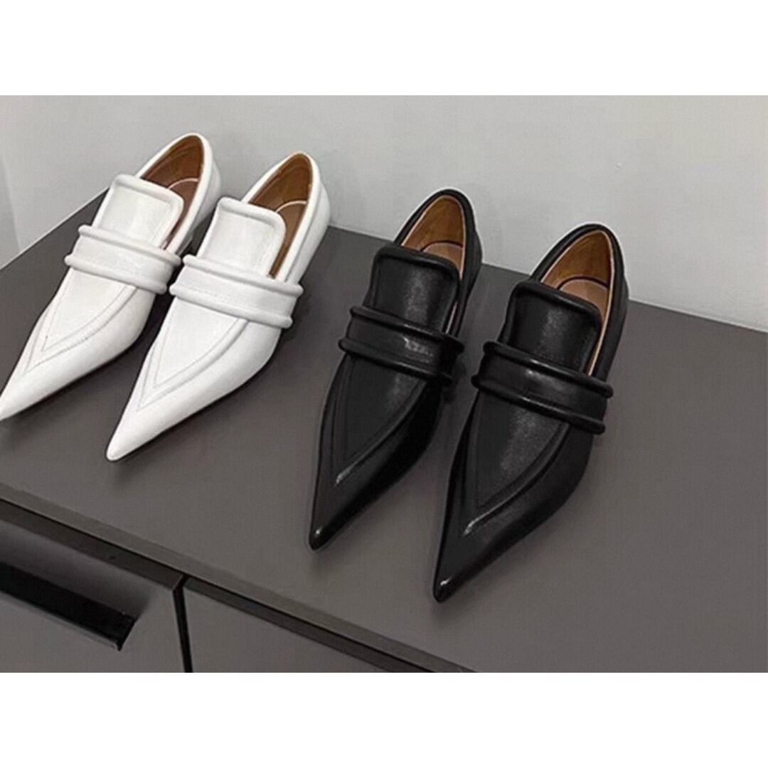 フランスレトロな雰囲気漂う、尖ったつま先デザインのシューズ。厚底仕様でスタイルアップしながら、安定感のある履き心地を叶えます。毎日のコーデに取り入れやすい一足です。 ◇カラー ブラック ホワイト ◇素材 羊皮 ◇サイズ:34,35,36,37,38,39,40 34 → 21.5cm 35 → 22.5cm 36 → 23.0cm 37 → 23.5cm 38 → 24.0cm 39 → 24.5cm 40 → 25.0cm ヒール高さ:5cm