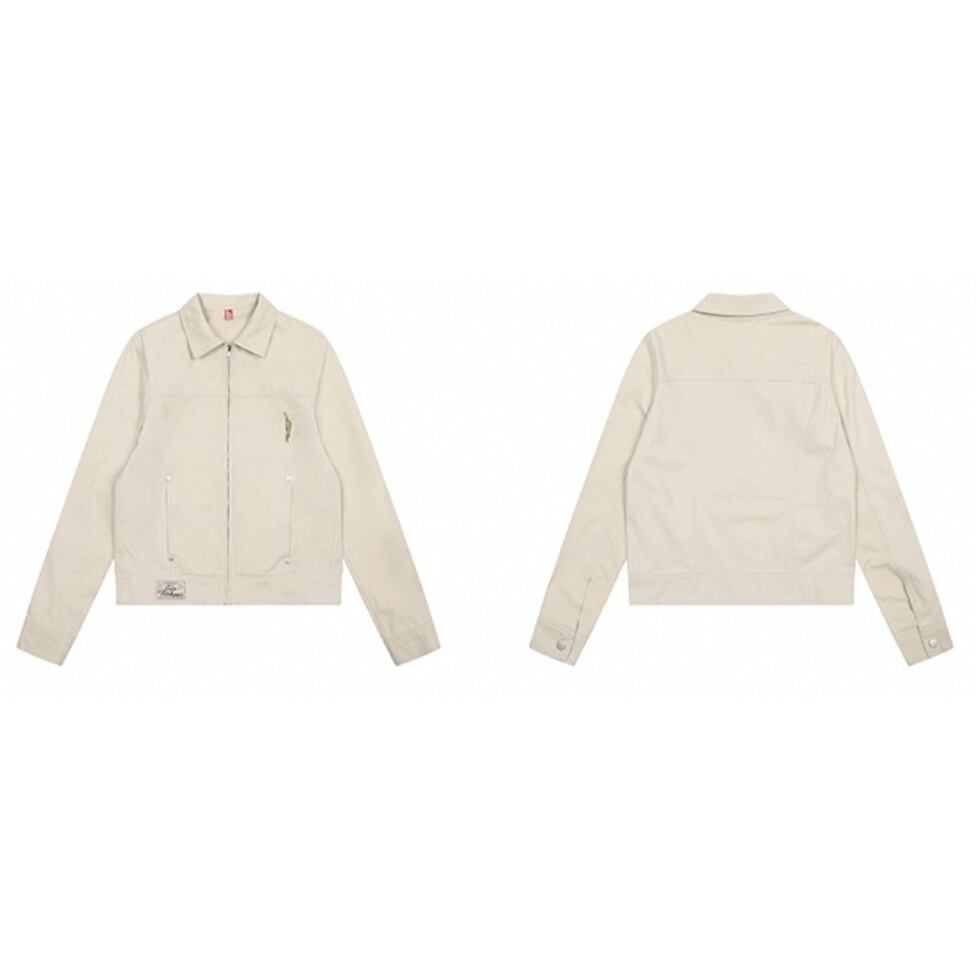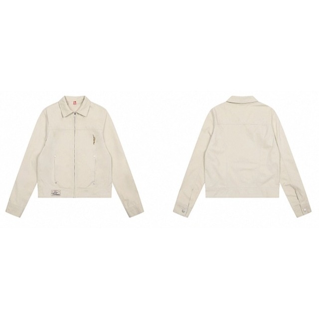 ストレートショルダー×ショート丈でバランス抜群のレトロワークジャケット。 デニムやカーゴパンツと合わせれば、アメリカンヴィンテージ感のある今っぽコーデに。 小柄さんにもおすすめのスモールエディションサイズで、すっきり着こなせます。 ◇カラー グレー オフホワイト ◇素材 コットン ◇サイズ:S,M,L S 肩幅:41cm胸囲:94cm着丈:57cm 袖丈:65cm M 肩幅:42cm胸囲:98cm着丈:58cm 袖丈:66cm L 肩幅:43cm胸囲:102cm着丈:59cm 袖丈:67cm ◇モデル 身長158cm:Mサイズ着用