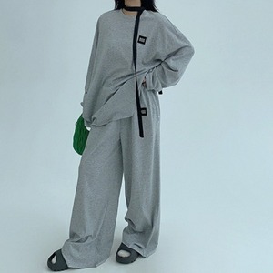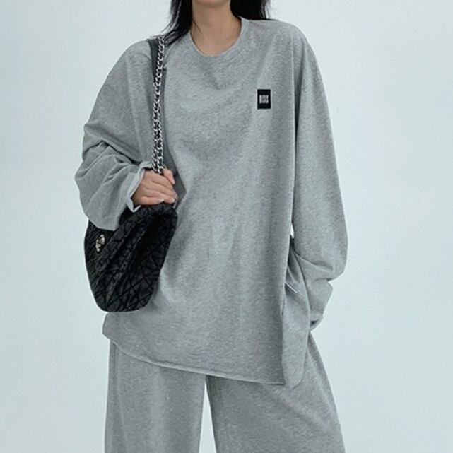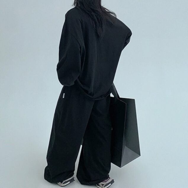 上品な光沢と落ち感のあるドレープが魅力のセットアップ。 ストレートラインのパンツが脚をきれいに見せ、全体にすっきりとした印象をプラス。 秋のデイリーコーデに、抜け感とトレンド感を与えてくれる1着です。 ◇カラー グレー ブラック ◇素材 ポリエステル ◇サイズ:M,L,XL,2XL トップス M 肩幅:58cm胸囲:124cm着丈:70cm 袖丈:56cm L 肩幅:59cm胸囲:128cm着丈:72cm 袖丈:57cm XL 肩幅60cm胸囲:132cm着丈:74cm 袖丈:58cm 2XL 肩幅:61cm胸囲:136cm着丈:76cm 袖丈:59cm パンツ M ウエスト:60cm ヒップ:110cm パンツ丈:98cm L ウエスト:63cm ヒップ:114cm パンツ丈:100cm XL ウエスト:66cm ヒップ:118cm パンツ丈:102cm 2XL ウエスト:69cm ヒップ:122cm パンツ丈:104cm ◇モデル 身長158cm:トップスLサイズ着用 パンツMサイズ着用