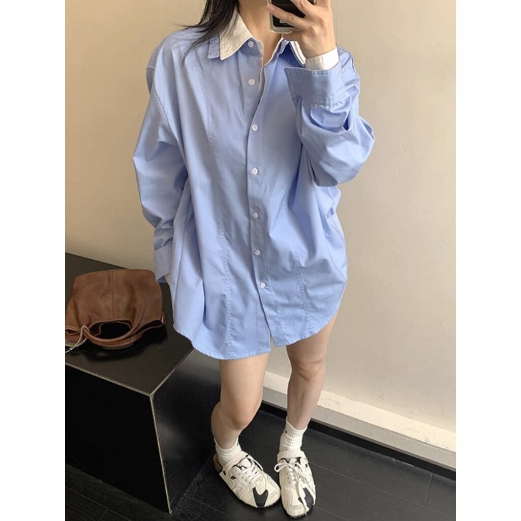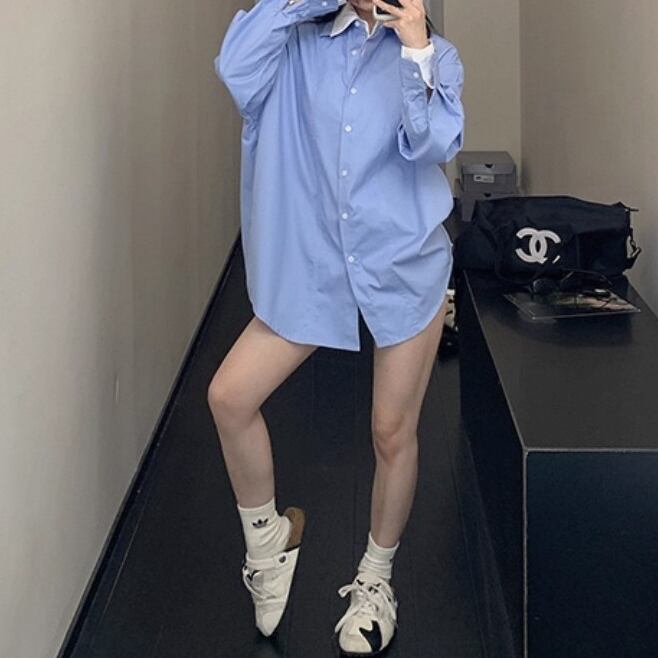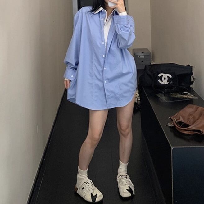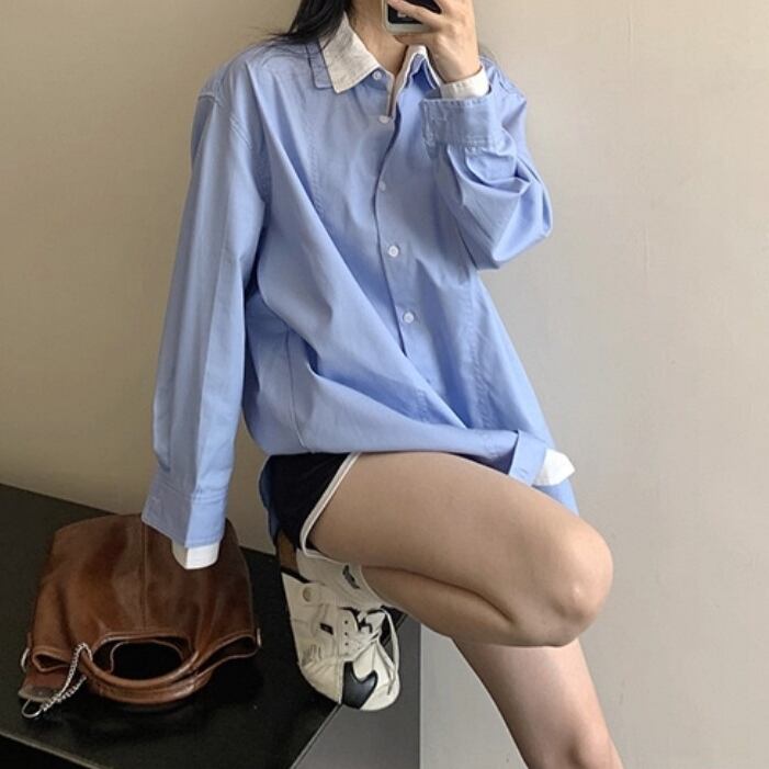 Simple Retro Casual Long sleeve shirt 125480