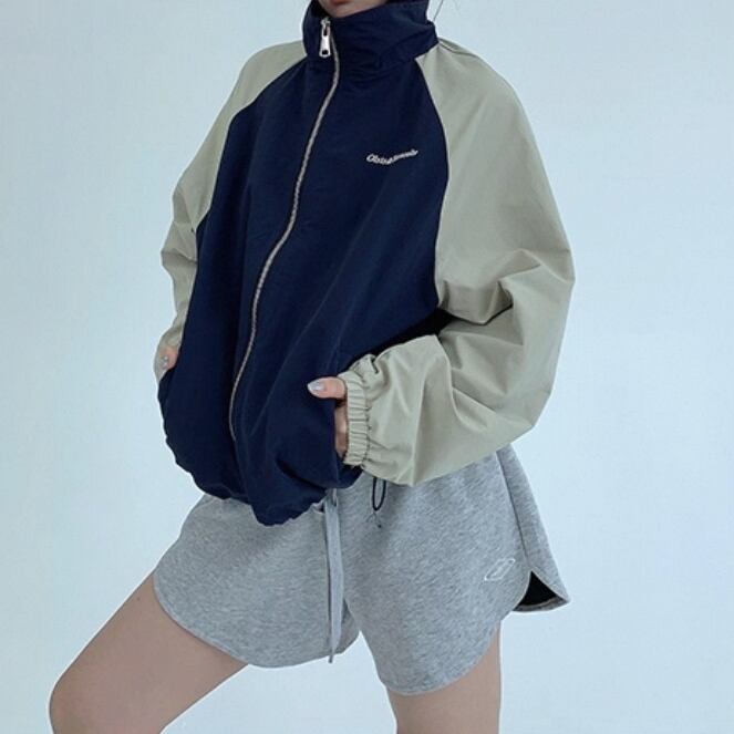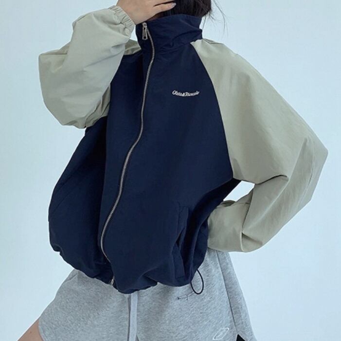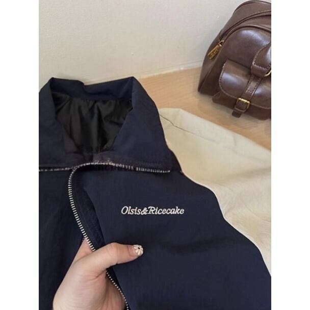 トレンド感あるアメリカンレトロデザインのスタンドカラージャケット。
