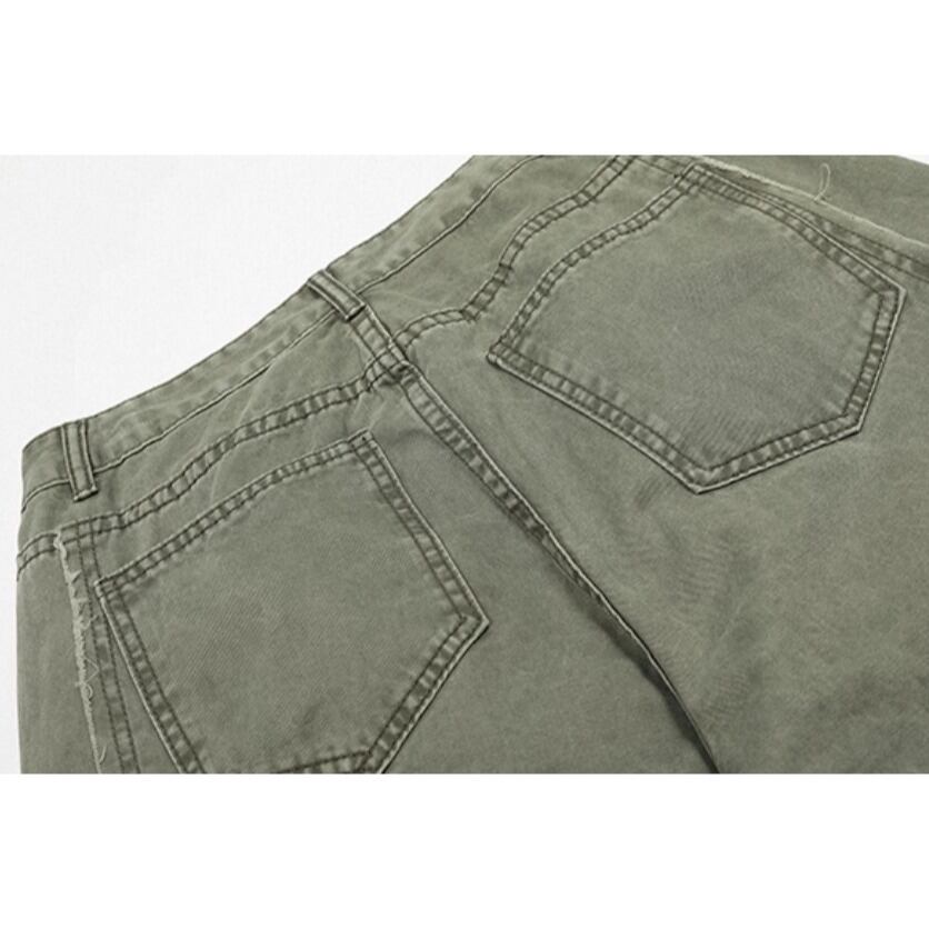 アメリカンワークスタイルを感じる、モッピングパンツ。 ヴィンテージ感漂う加工と無骨なストレートラインで、Tシャツにもジャケットにもマッチ。 カジュアルにもストリートにも着回せる、トレンドライクな1本です。 ◇カラー ネイビー グリーン ◇素材 ウォッシュドコットン ◇サイズ:S,M,L,XL S ウエスト:72cm ヒップ:62cm パンツ丈:110cm M ウエスト:76cm ヒップ:64cm パンツ丈:111cm L ウエスト:80cm ヒップ:66cm パンツ丈:112cm XL ウエスト:84cm ヒップ:68cm パンツ丈:113cm ◇モデル 身長158cm:Sサイズ着用