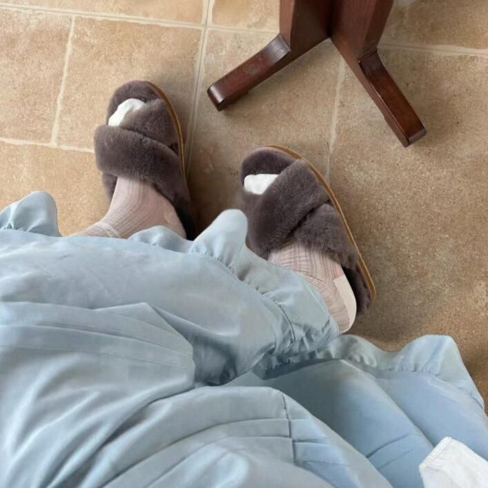 高級感あふれるレザーと、ふわふわのファーを一体化した贅沢サンダル。 見た目はシンプルなのに、履いた瞬間から足元を包み込むようなぬくもり。 ソフトボトム仕様で歩きやすく、滑り止め付きで安心。 ◇カラー オフホワイト パープル グリーン グレー ◇素材 コットン ◇サイズ:35,36,37,38,39,40 35 → 22.5cm 36 → 23.0cm 37 → 23.5cm 38 → 24.0cm 39 → 24.5cm 40 → 25.0cm ヒール高:2cm