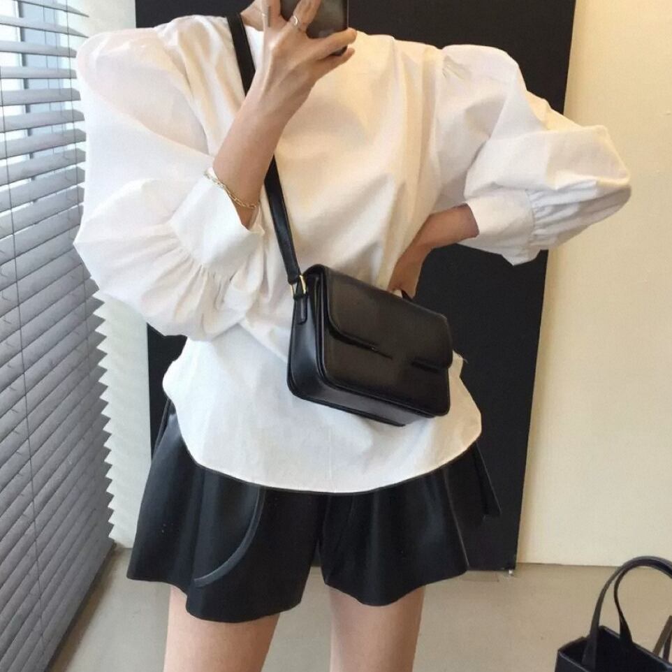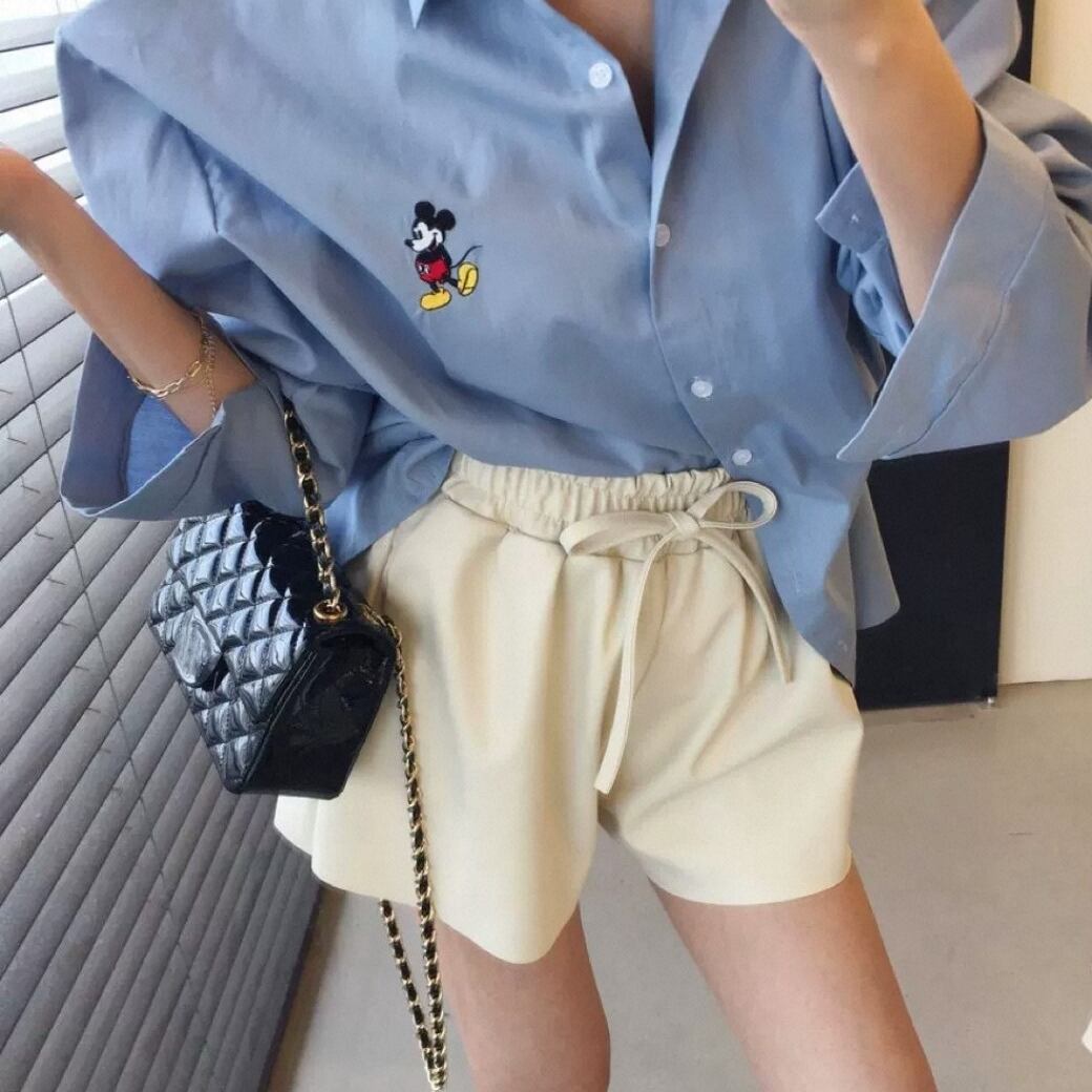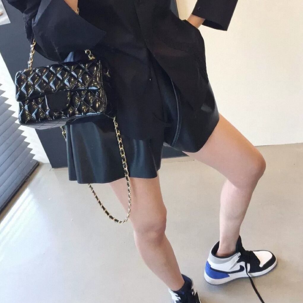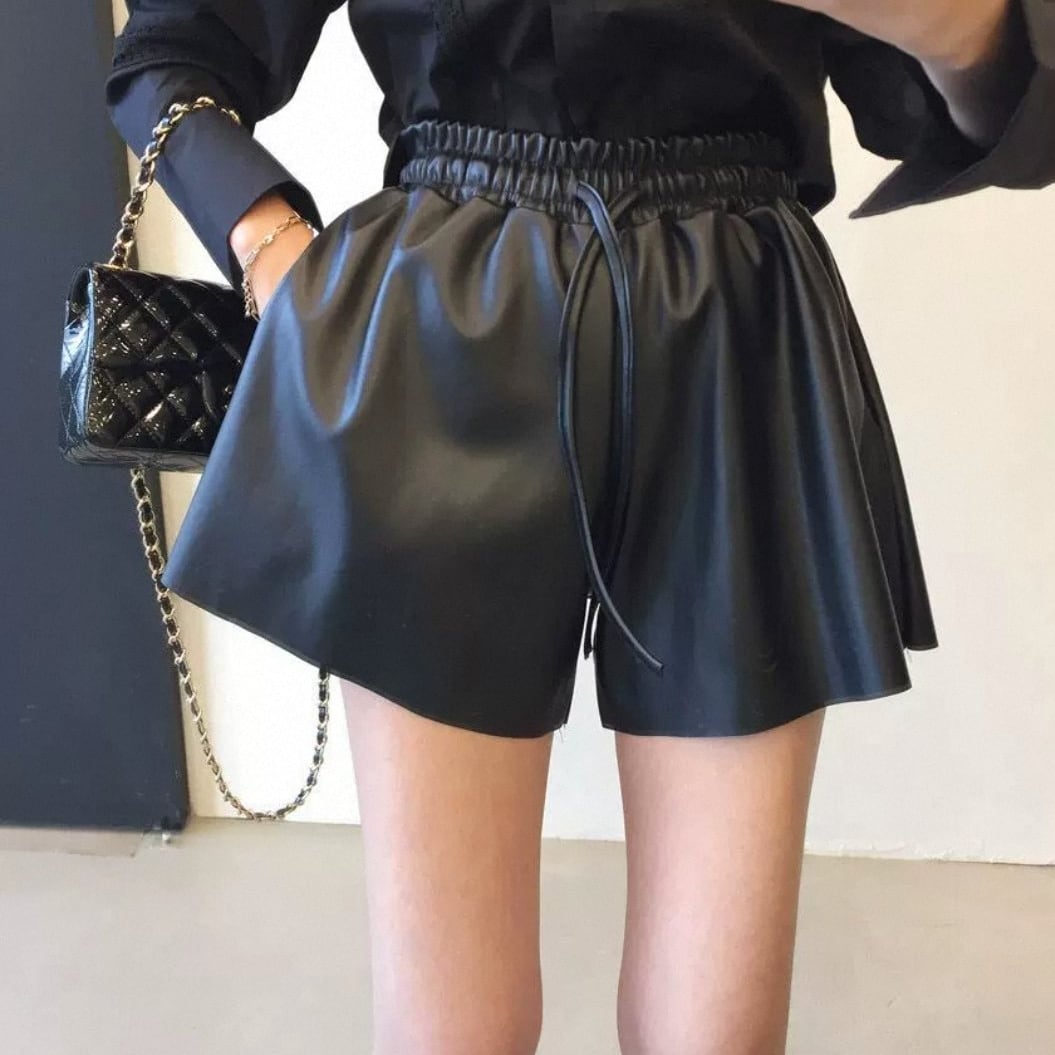 上品なツヤ感が魅力のフレンチレトロPUレザーショートパンツ。