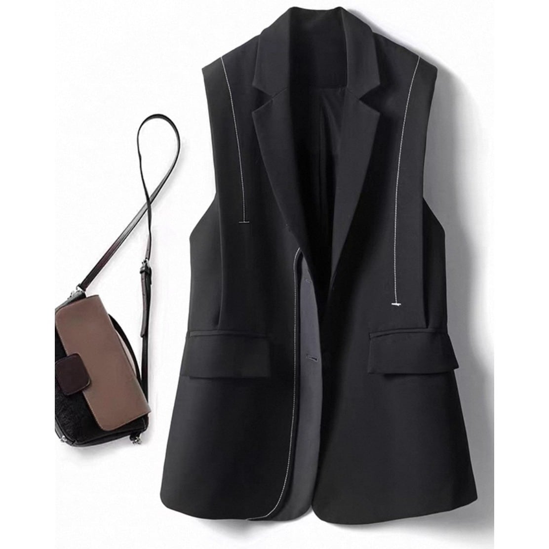 繊細なラインの継ぎ目がデザインポイントになった、今季注目のアウターベスト。