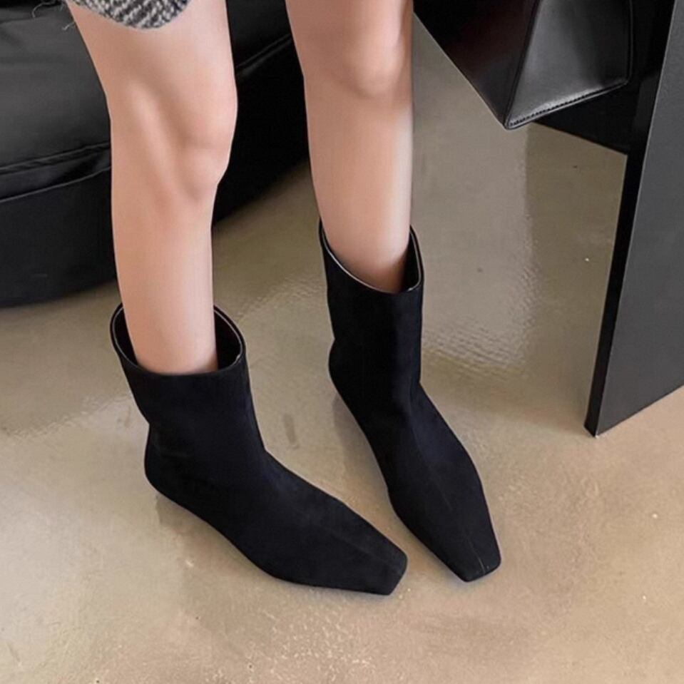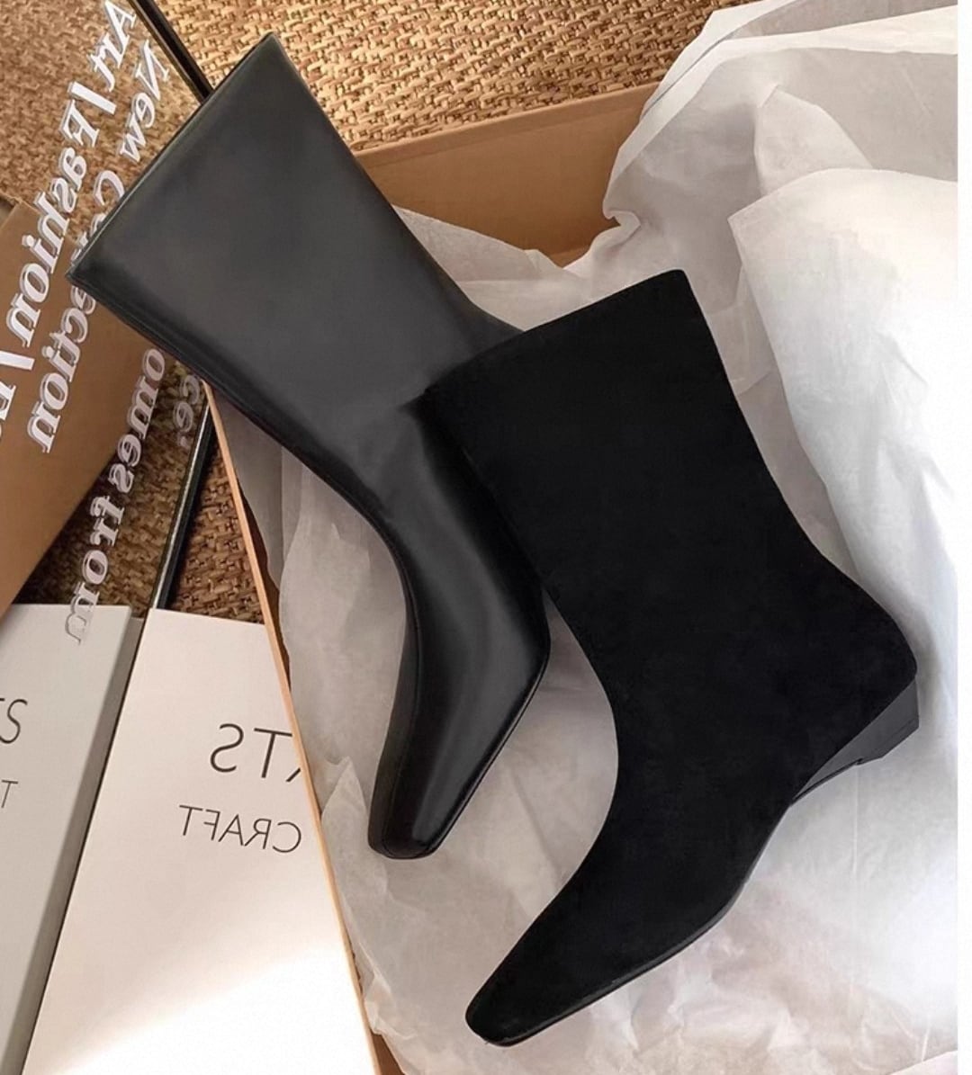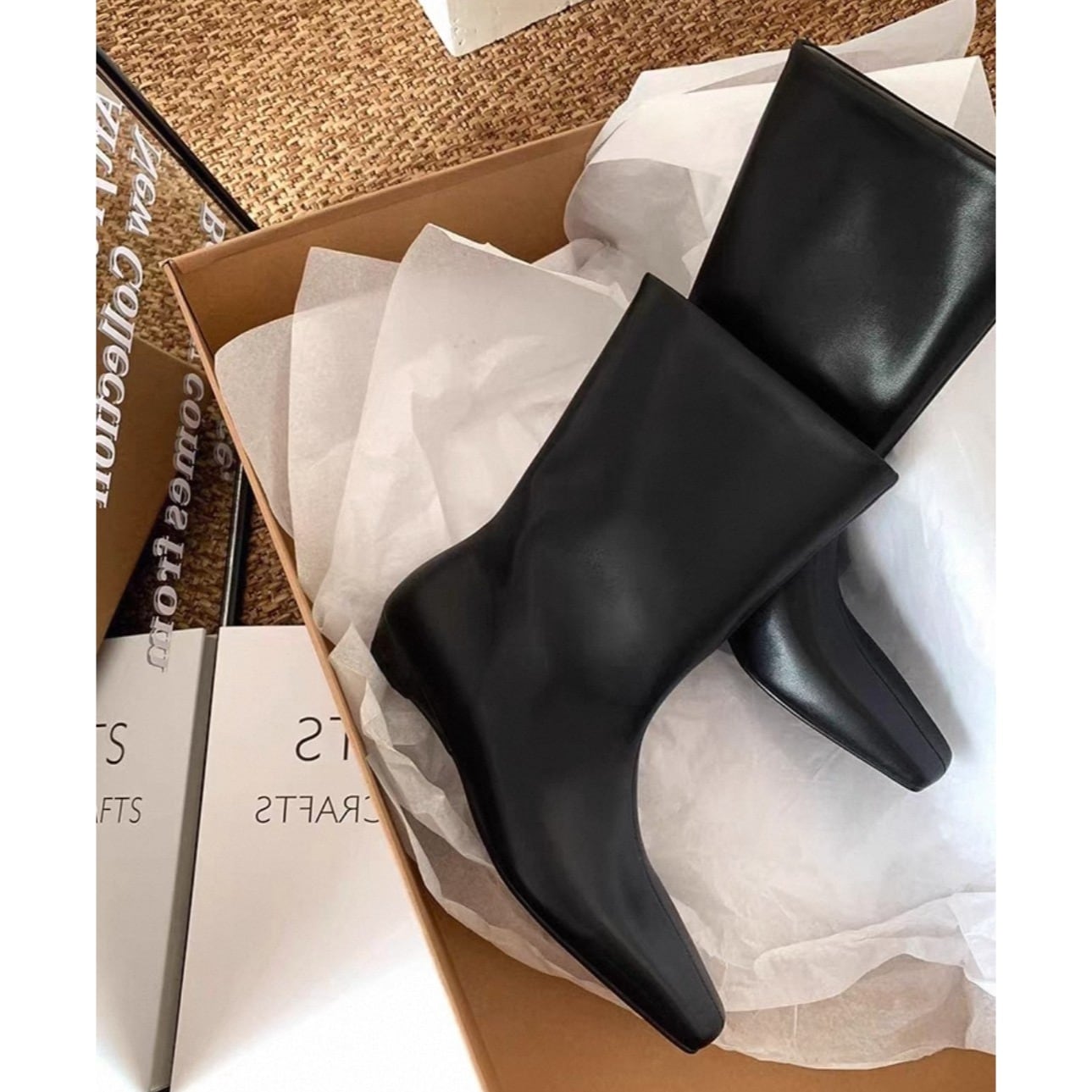 秋冬の足元を格上げする、本革レトロウェッジヒールブーツ。 ミッドチューブ丈で脚をすっきり長く見せ、安定感のあるウェッジヒールで歩きやすさも抜群。 スカートにもパンツにも合わせやすく、デイリーにもお出かけにも活躍。 大人の女性にぴったりの、秋冬新作アンクルブーツです。 ◇カラー ブラック ブラックスエード ◇素材 羊皮 ◇サイズ:34・35・36・37・38・39・40 34 → 22.0cm 35 → 22.5cm 36 → 23.0cm 37 → 23.5cm 38 → 24.0cm 39 → 24.5cm 40 → 25.0cm ヒール:2cm