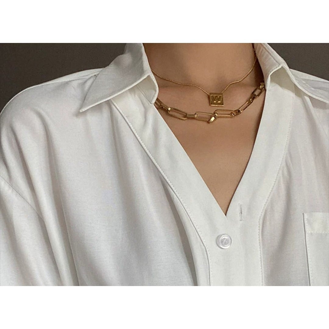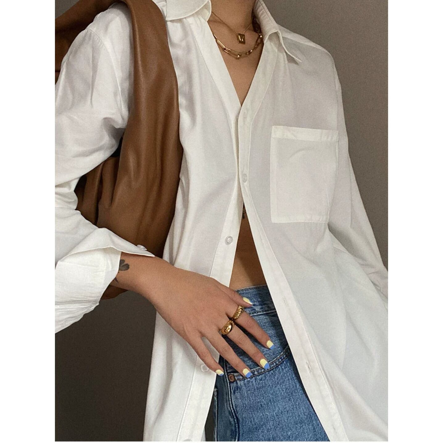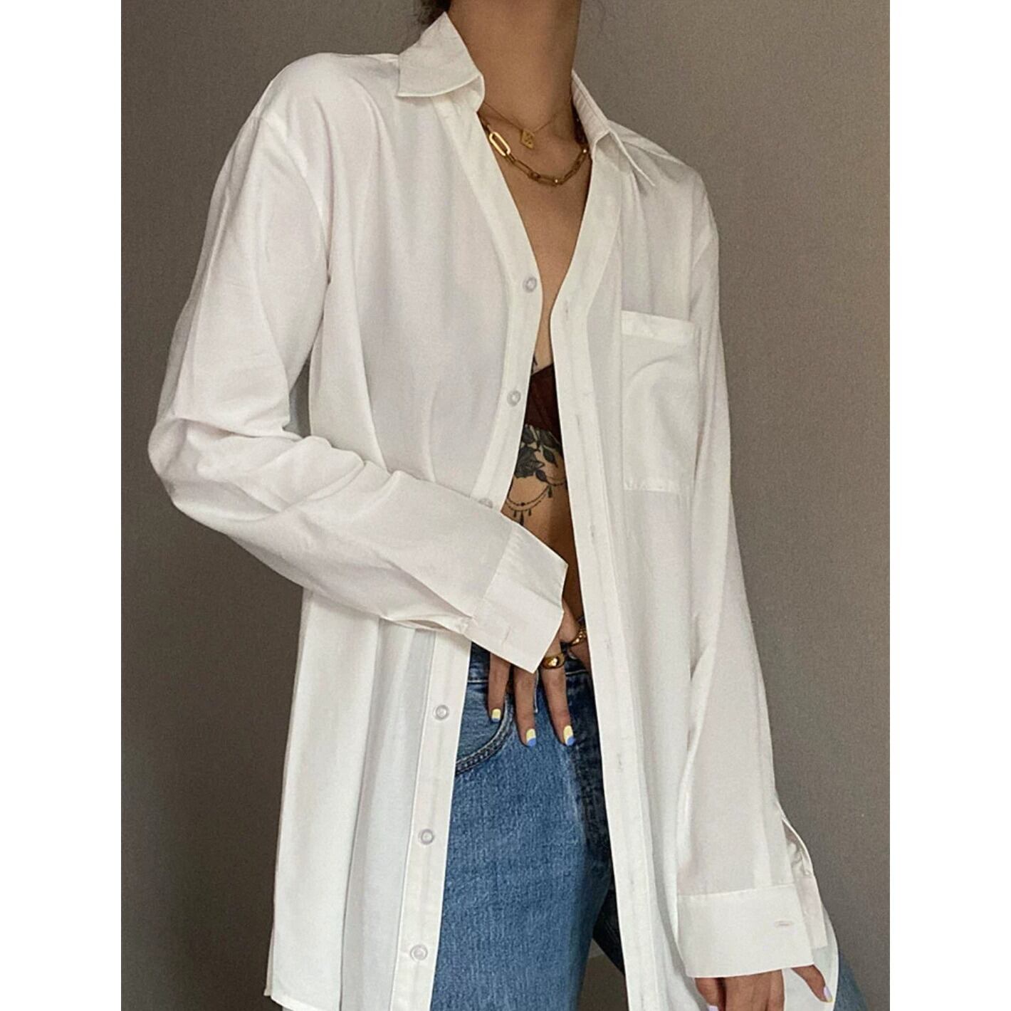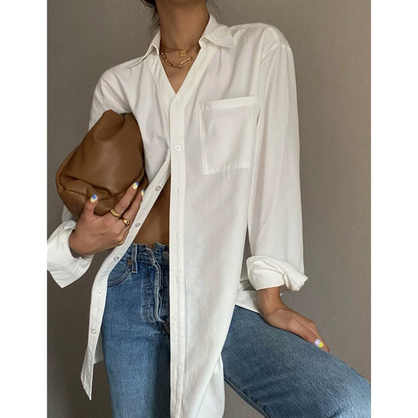 ゆるやかなドレープが美しい、ルーズフィットの長袖シャツ。