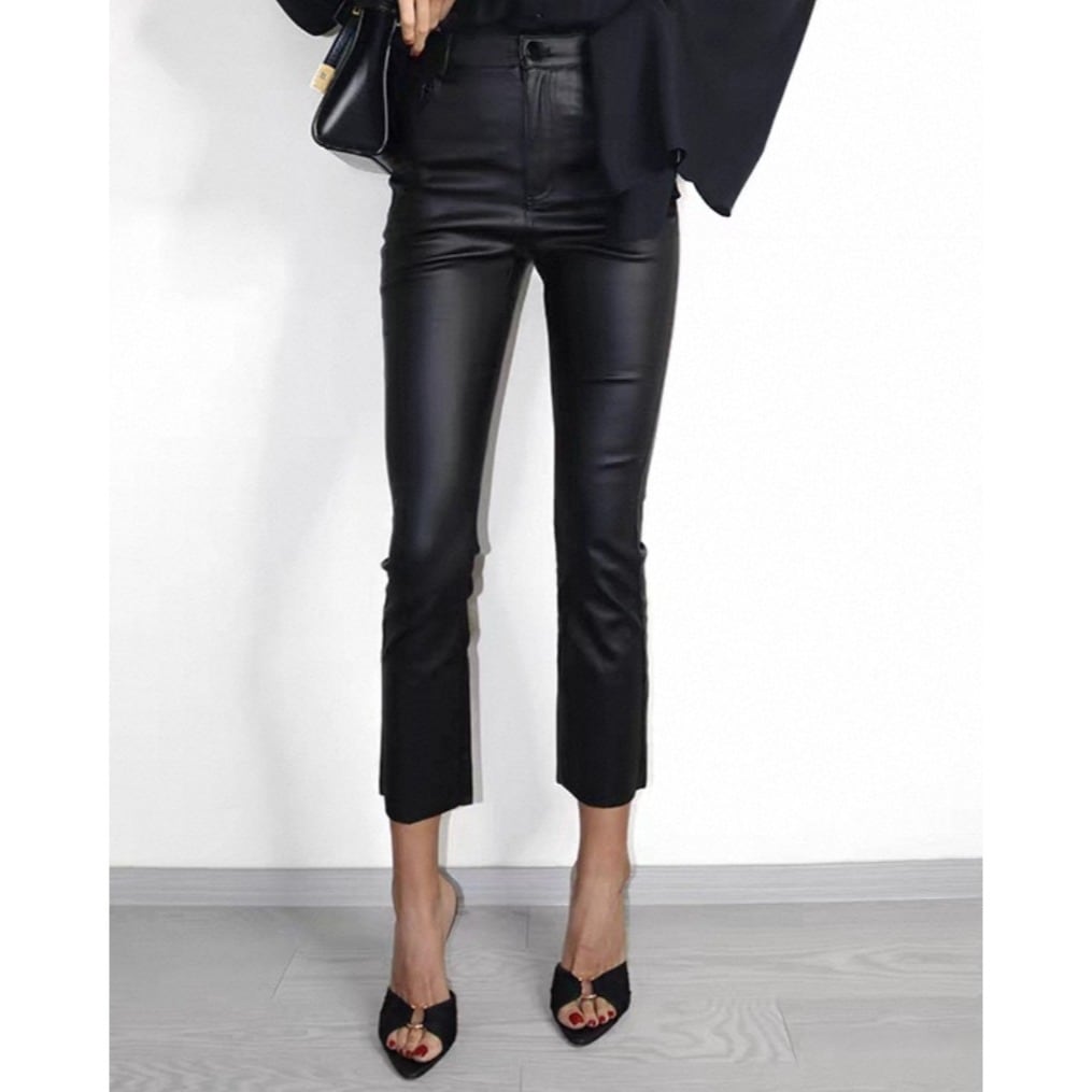 しなやかな光沢感が魅力のスリムレザーパンツ。