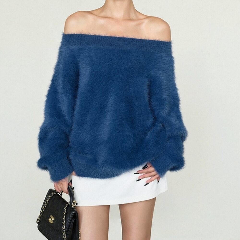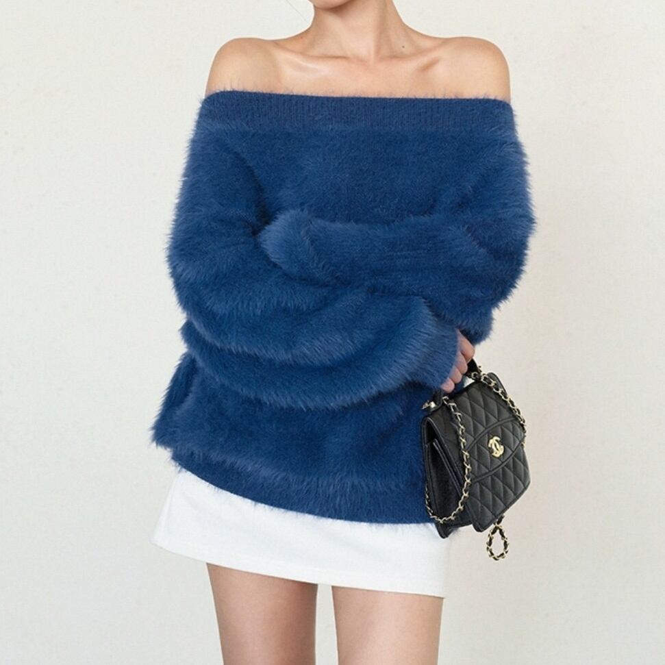 ふんわりとしたフェイクミンク素材がやさしく包み込む、オフショルダープルオーバーセーター。 ゆったりシルエットで抜け感のある大人のリラックススタイルを叶えます。 デニムにもスカートにも合わせやすく、カジュアルにもフェミニンにも着回せる一枚です。 ◇カラー ブルー グレー ◇素材 コットン ポリエステル ◇サイズ:S,M,L S 肩幅:58cm胸囲:112cm着丈:57.5cm 袖丈:45cm M 肩幅:60cm胸囲:116cm着丈:59cm 袖丈:46cm L 肩幅:62cm胸囲:120cm着丈:60.5cm 袖丈:47cm ◇モデル 身長167cm:Sサイズ着用
