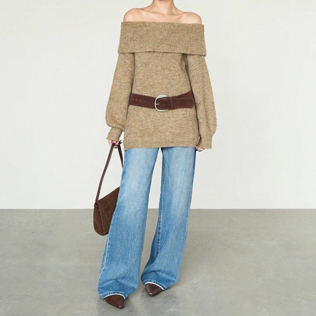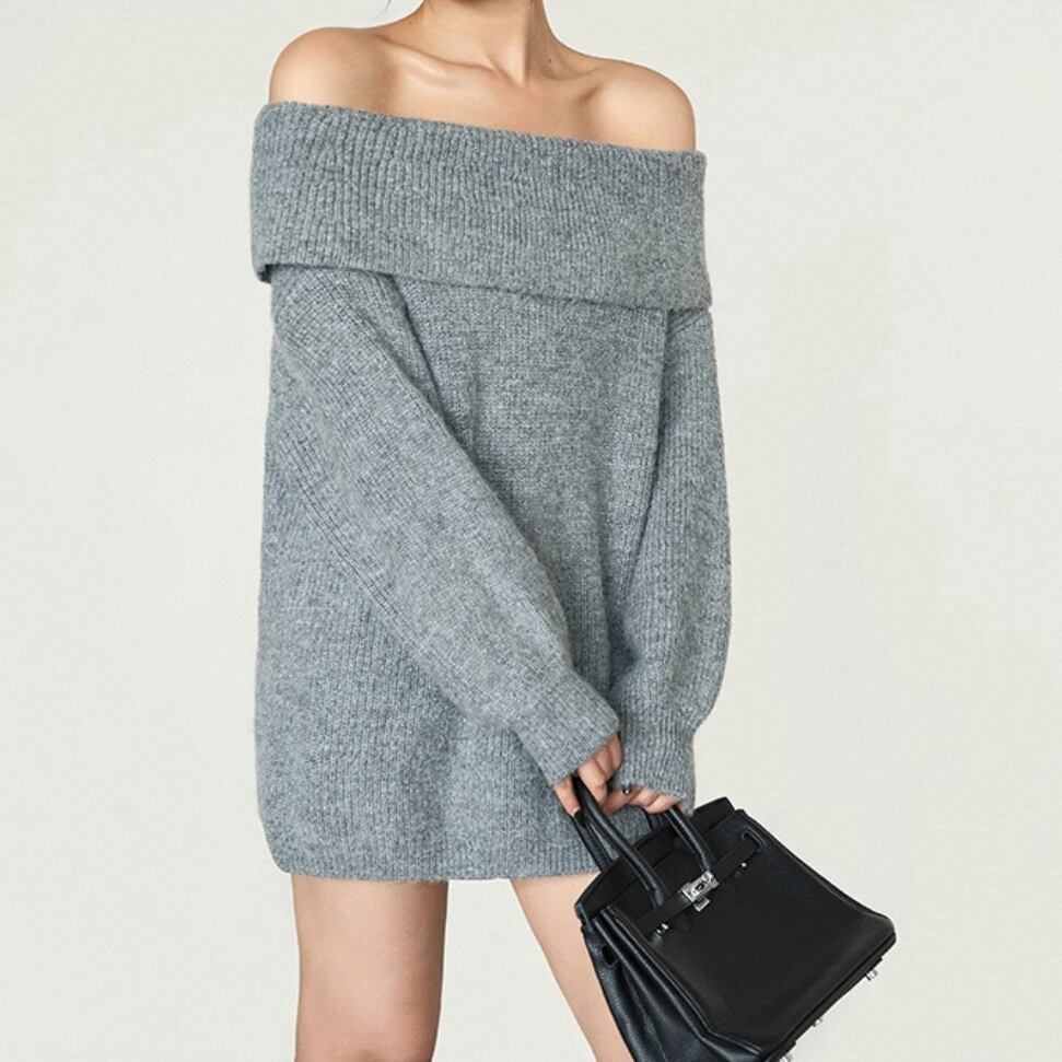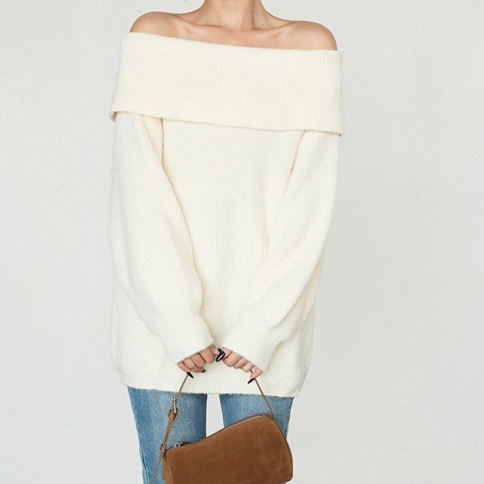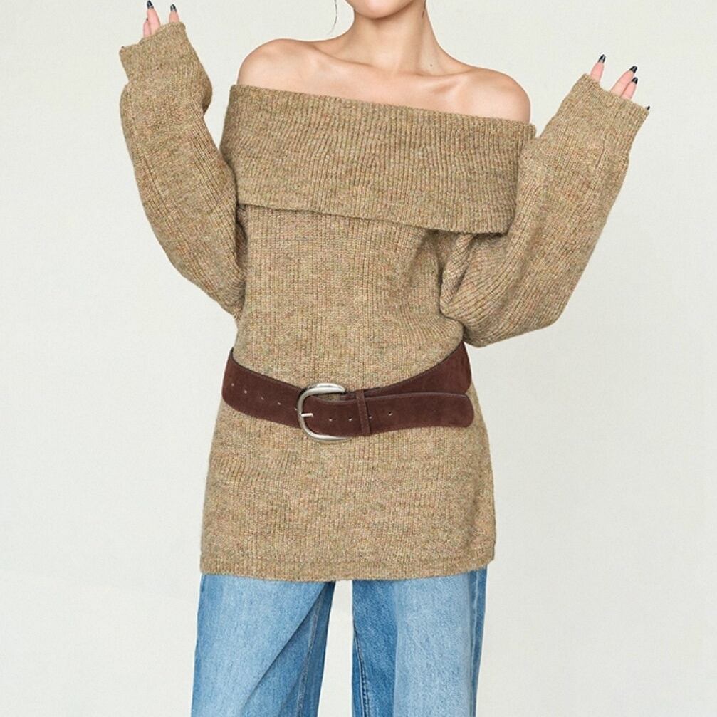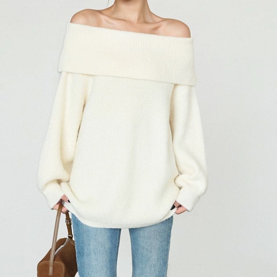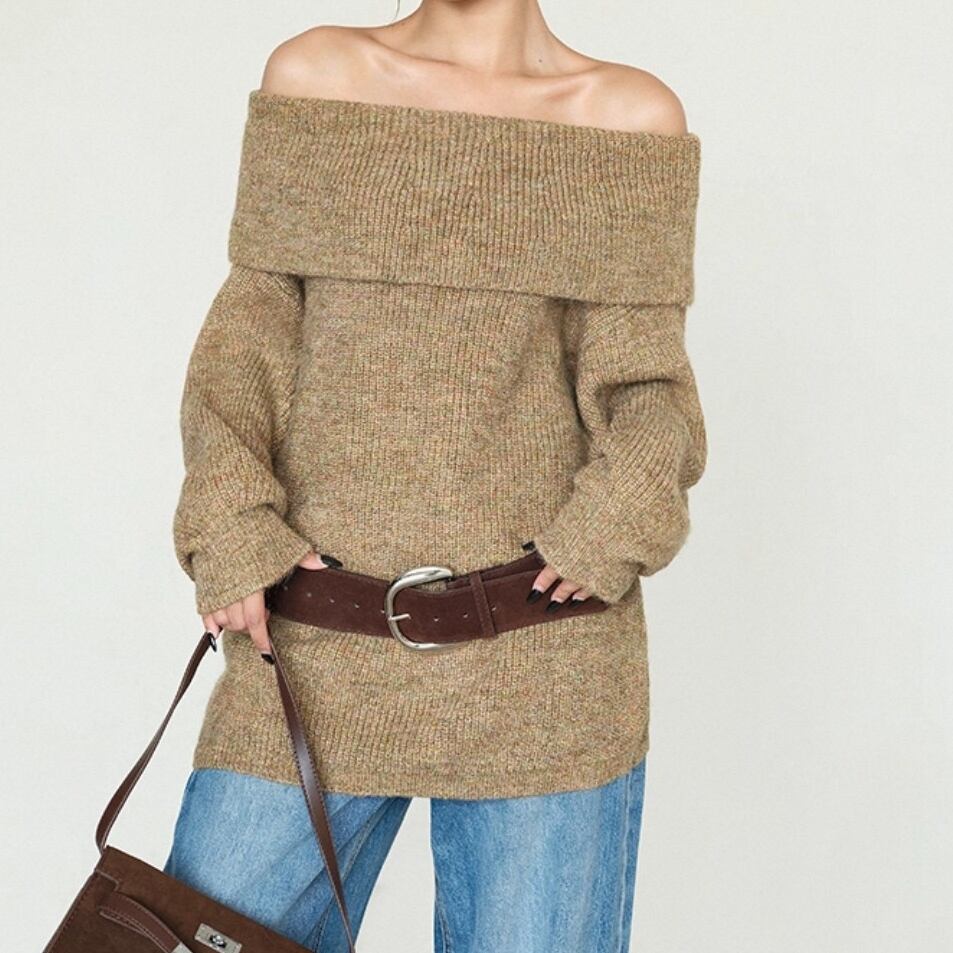 ふんわりとした編み地が魅力のミドル丈オフショルダーセーター。 リラックス感のあるルーズフィットで、体のラインを優しくカバー。 普段使いからお出かけまで幅広く活躍する万能アイテム。 ◇カラー オフホワイト グレー ブラウン ◇素材 アクリル ポリエステル ◇サイズ:S,M,L S 肩幅:50cm胸囲:108cm着丈:61cm 袖丈:44cm M 肩幅:51.5cm胸囲:112cm着丈:62.5cm 袖丈:44.8cm L 肩幅:53cm胸囲:116cm着丈:64cm 袖丈:45.6cm ◇モデル 身長167cm:Sサイズ着用
