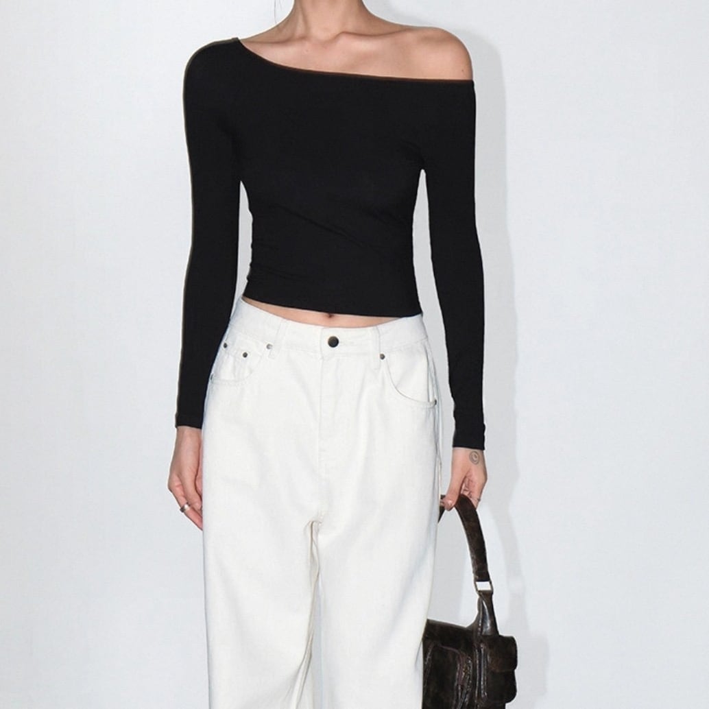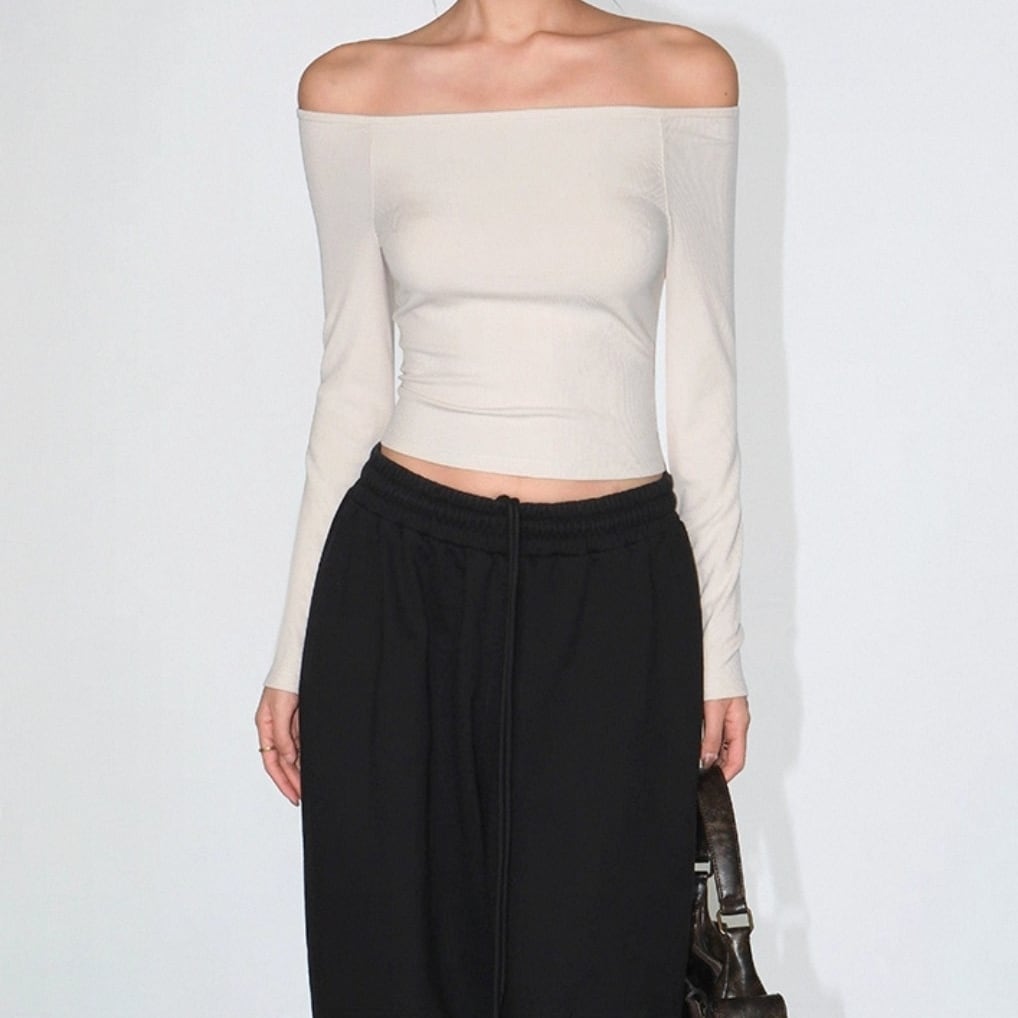 カーブラインのオフショルダーデザインがデコルテを美しく魅せるニットトップス。スリムフィットでボディラインを引き立て、クロップド丈がトレンド感をプラス。デニムやスカートに合わせて、上品で女性らしいスタイルに。 ◇カラー ブラック パープル オフホワイト ◇素材 ビスコース スパンデックス ◇サイズ:S,M,L,XL S 胸囲:68cm着丈:37cm 袖丈:57cm M 胸囲:72cm着丈:38cm 袖丈:57.9cm L 胸囲:76cm着丈:39cm 袖丈:58.8cm XL 胸囲:80cm着丈:40cm 袖丈:59.7cm ◇モデル 身長173cm:Sサイズ着用