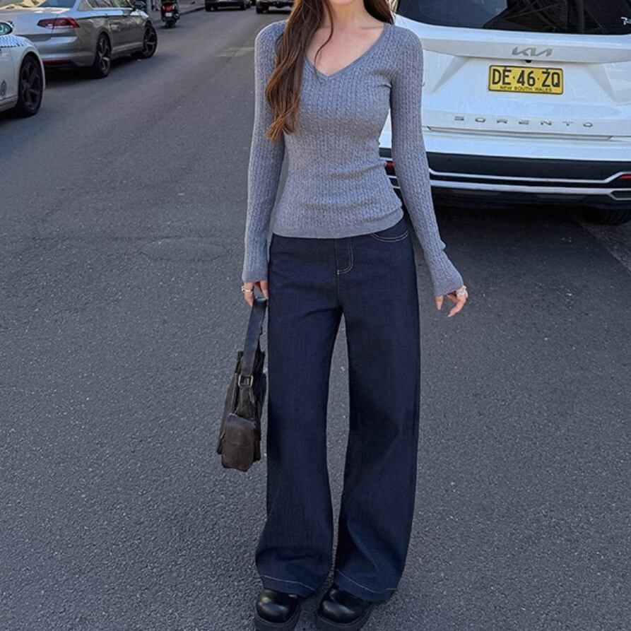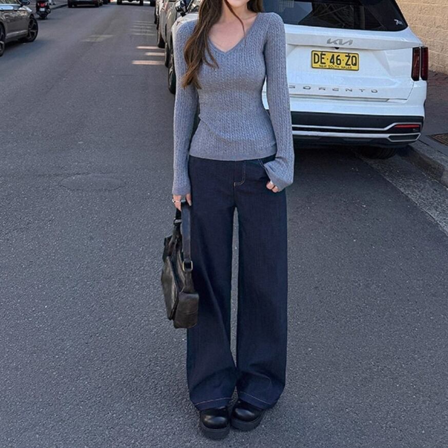 Casual Highwaist Loose Denim Wide leg Pants 125510