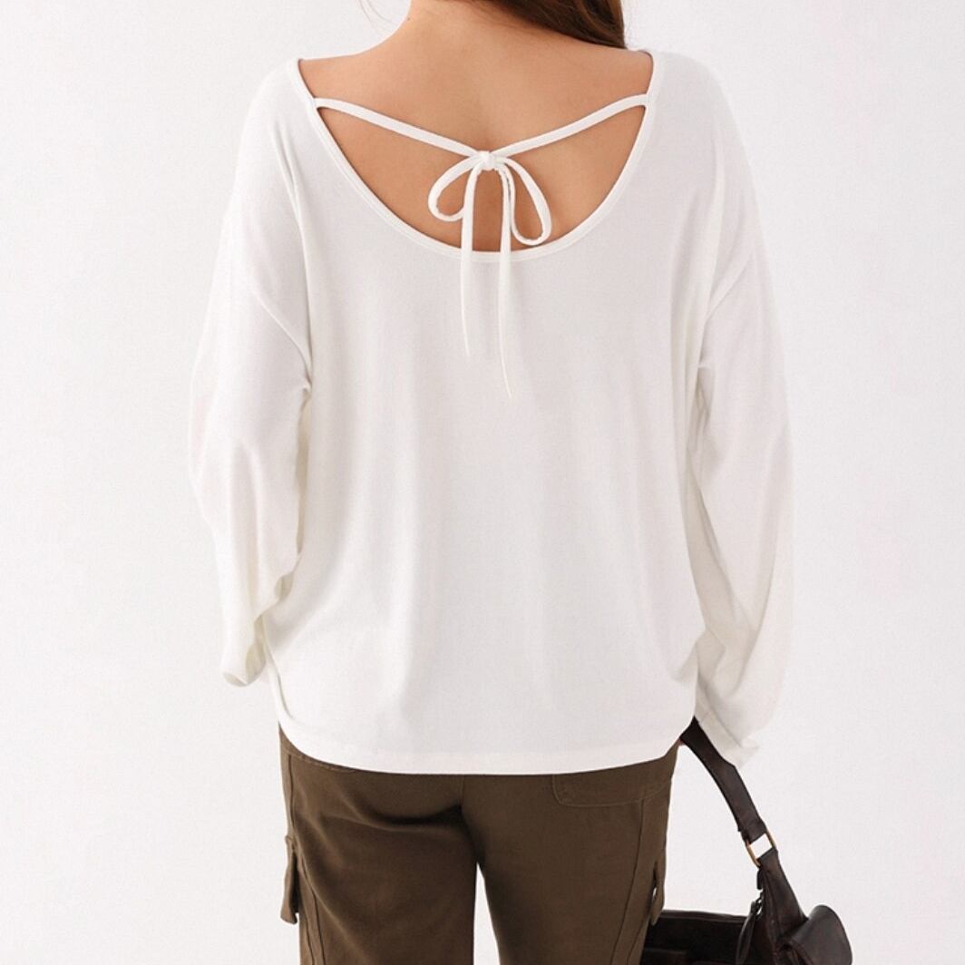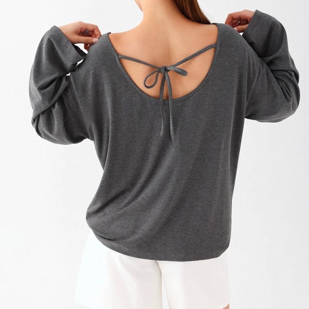 背中の抜け感が美しい、リラックスムード漂うバックレストップス。 ルーズフィットのワンショルダーデザインで、さりげなく女性らしさを演出します。 ウエストを軽く絞るタイデザインが、スタイルアップ効果も◎ おうち時間にも街歩きにもぴったりな、大人のレイジースタイルアイテムです。 ◇カラー グレー ホワイト ブラック ◇素材 ビスコース スパンデックス ◇サイズ:S,M,L S 肩幅:25cm胸囲:108cm着丈:64cm 袖丈:52cm M 肩幅:26cm胸囲:112cm着丈:65.5cm 袖丈:52.8cm L 肩幅:27cm胸囲:116cm着丈:67cm 袖丈:63.6cm ◇モデル 身長163cm:Sサイズ着用