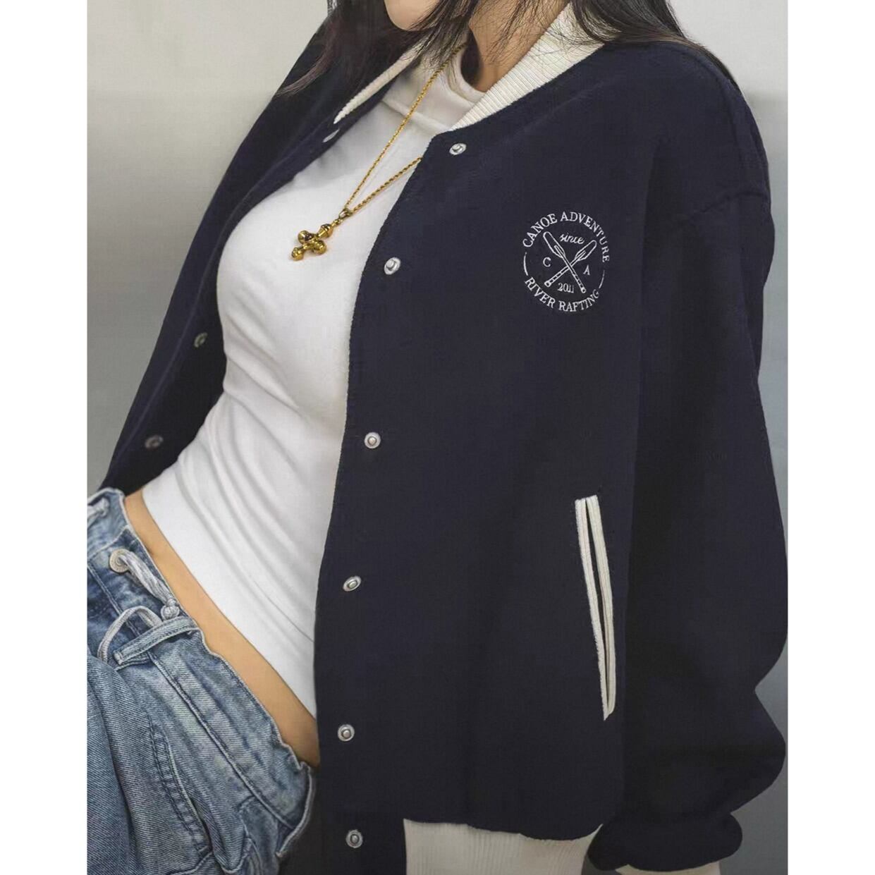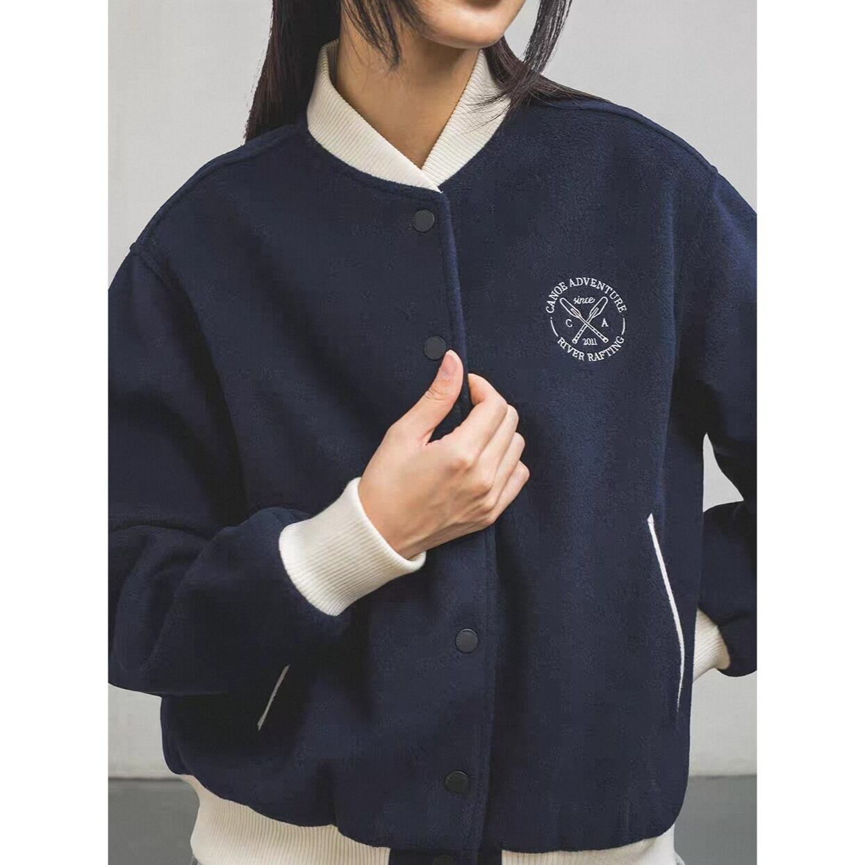 どこか懐かしい配色が目を引く、レトロなカレッジ風ジャケット。