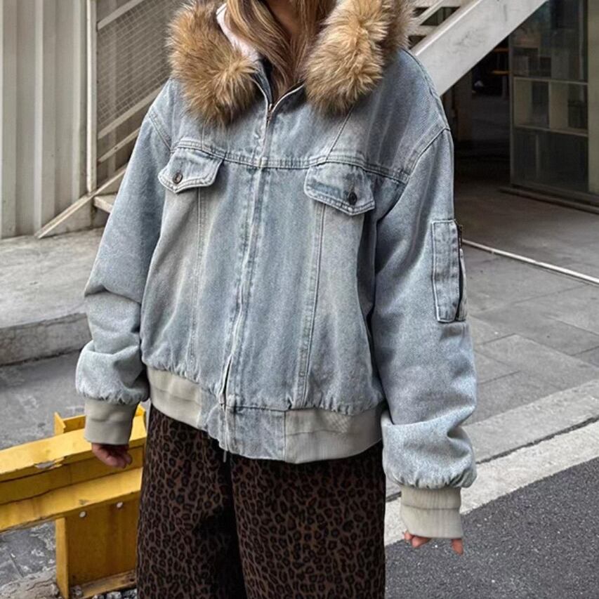 取り外し可能なファーカラーがポイントの、冬仕様デニムジャケット。
