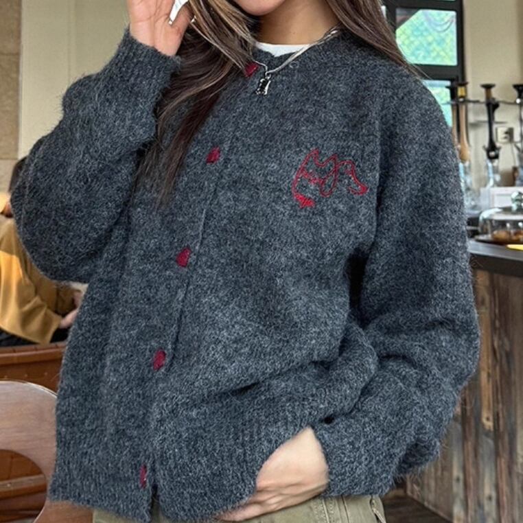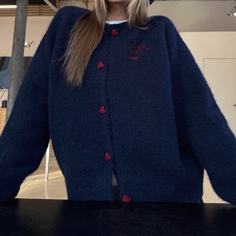 クラシックなボタンデザインのニットカーディガン。暖かみのある編み地と、ゆったりシルエットが女性らしさを引き立てます。ベーシックながらもレトロな雰囲気が魅力の、季節感あふれるアイテムです。 ◇カラー グレー ネイビー ◇素材 ポリエステル ◇サイズ:M,L,XL,2XL M 胸囲:110cm着丈:56cm 袖丈:66cm L 胸囲:114cm着丈:58cm 袖丈:67cm XL 胸囲:116cm着丈:60cm 袖丈:68cm 2XL 胸囲:120cm着丈:62cm 袖丈:69cm