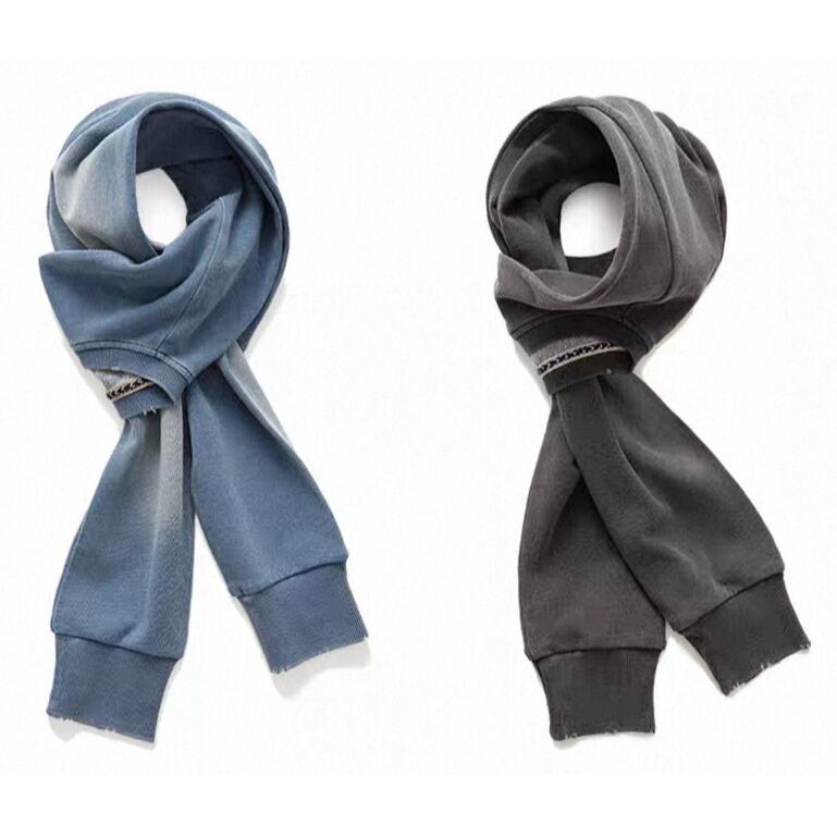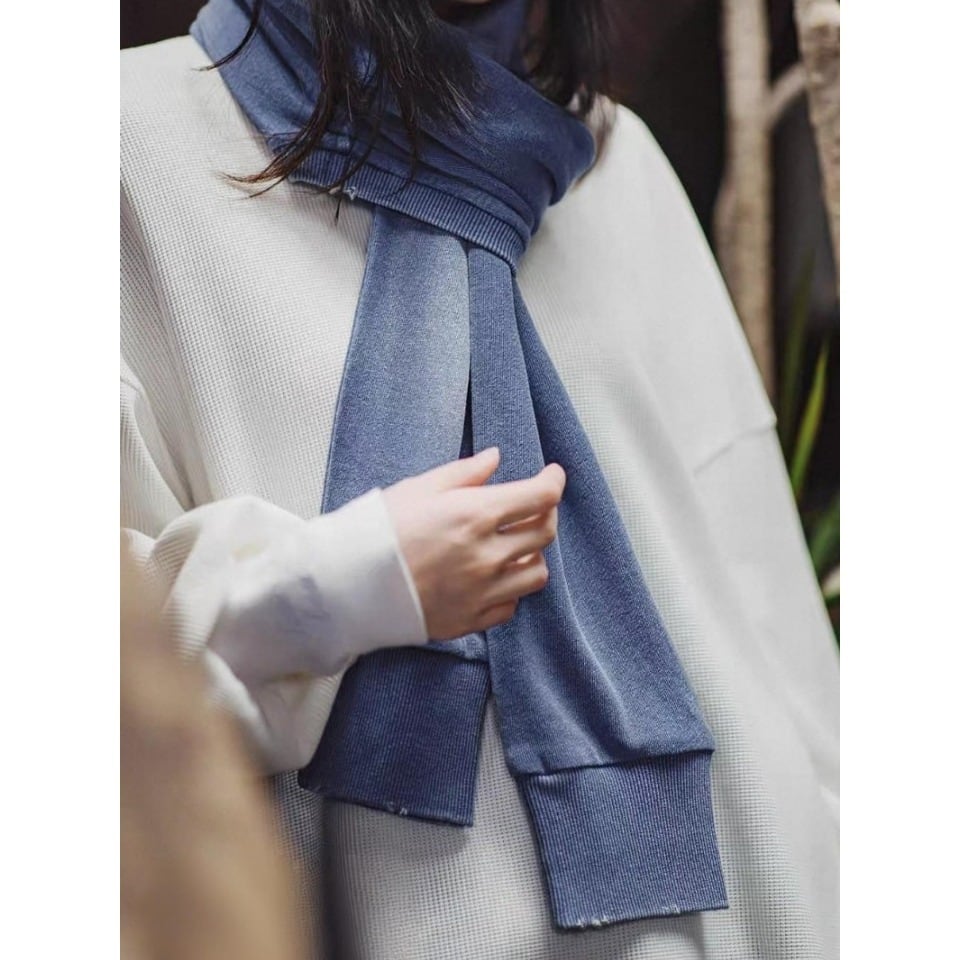 肩に掛けても、首元に巻いても美しく決まる、汎用性の高いロングニットマフラー。