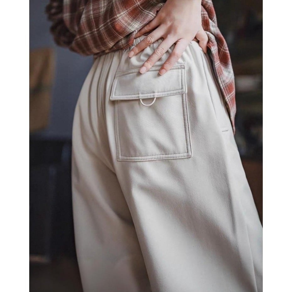 脚のラインを拾わないストレート×ワイドの絶妙なバランスで、スタイルをきれいに見せるワイドレッグパンツ。
