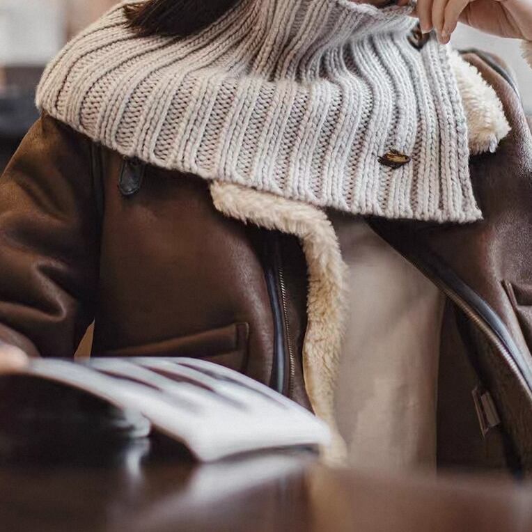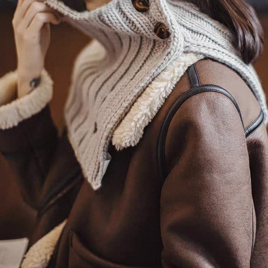すっきりとした長さで巻きやすい、ネックウォーマー感覚のショートニットマフラー。